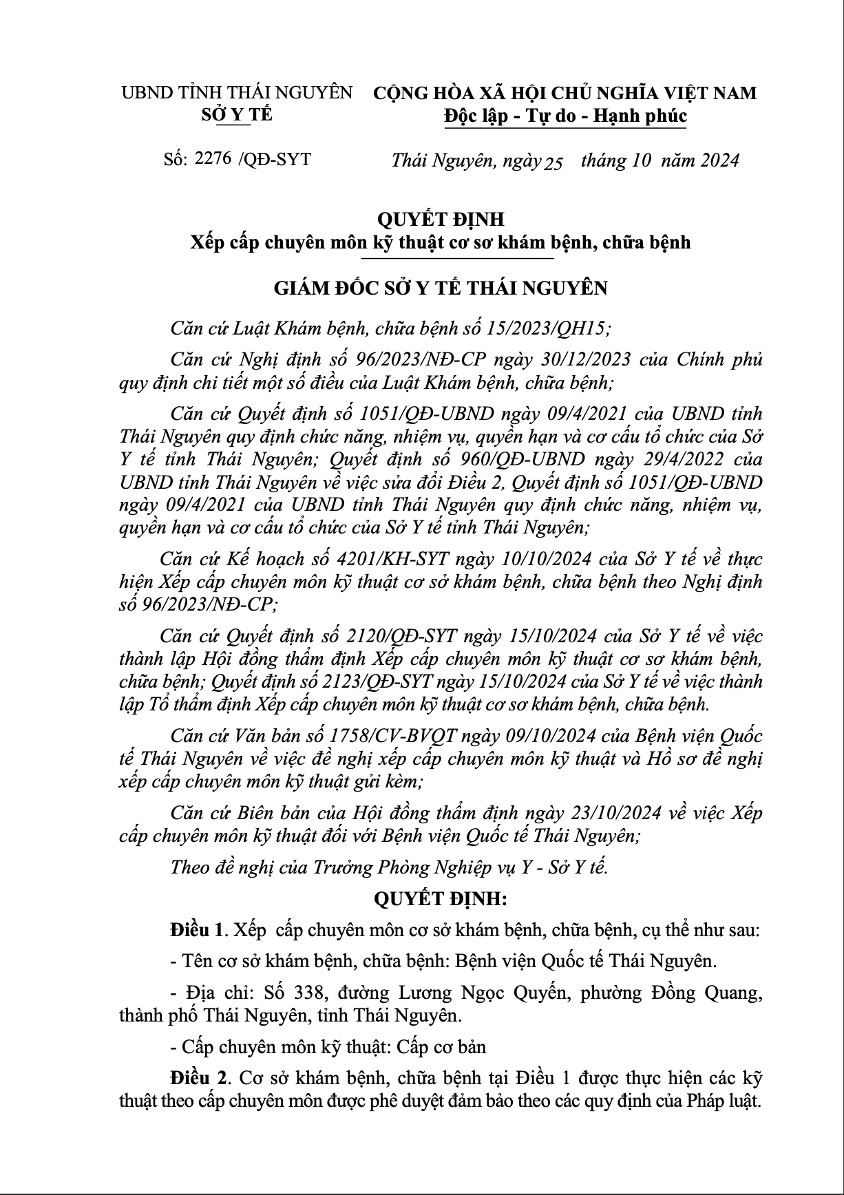 Bệnh viện Quốc tế Thái Nguyên trực thuộc CTCP Tập đoàn Bệnh viện TNH thông báo Cơ sở cập nhập kiến thức y khoa...