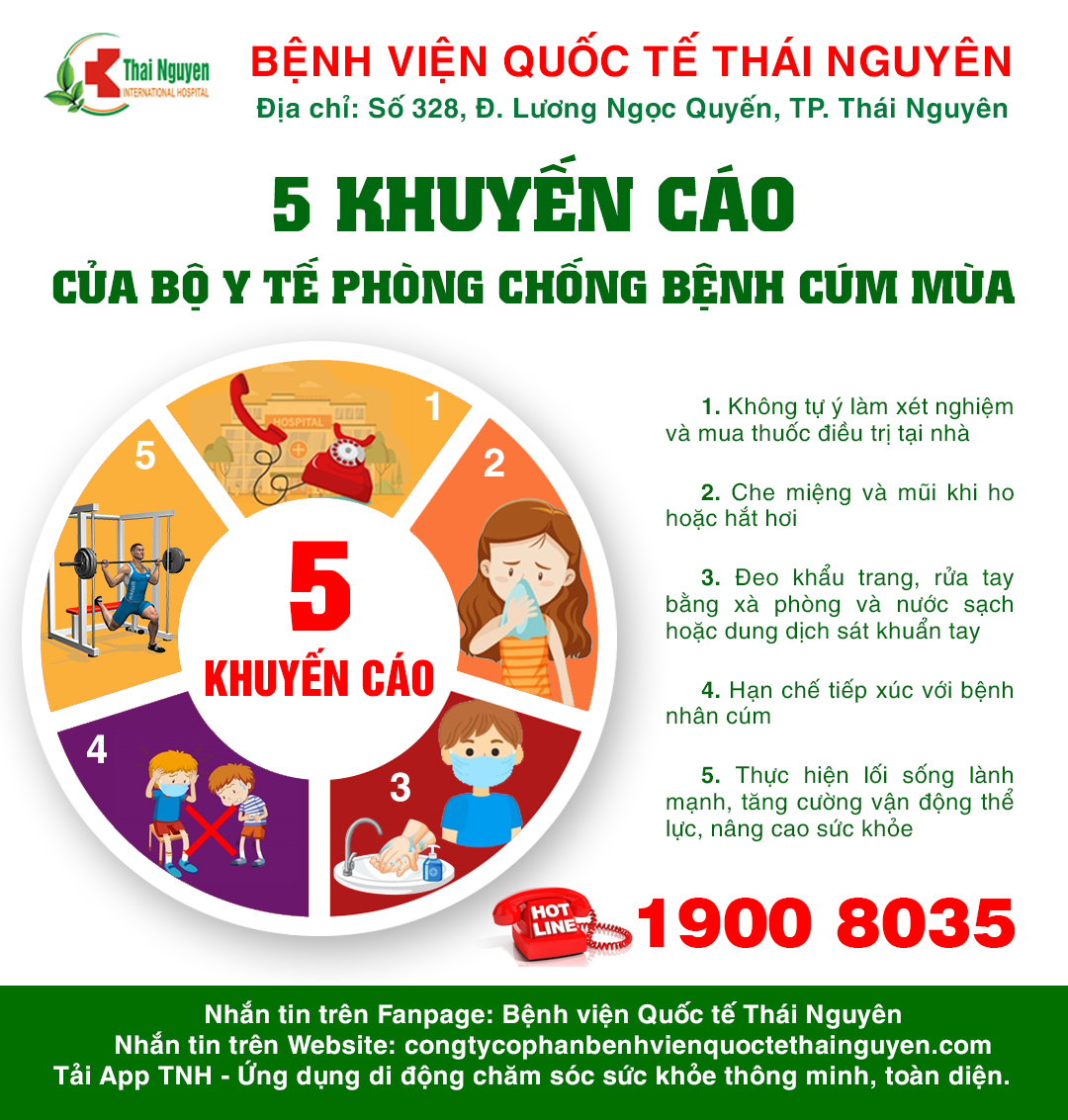 Triệu chứng của bệnh cúm mùa rất khó phân biệt với các bệnh đường hô hấp khác, việc chẩn đoán và điều trị phải tuân thủ theo hướng dẫn của cơ quan y tế. Để chủ động phòng chống bệnh cúm mùa, bảo vệ sức khỏe của bản thân, gia đình và cộng đồng, Bộ Y tế khuyến cáo: