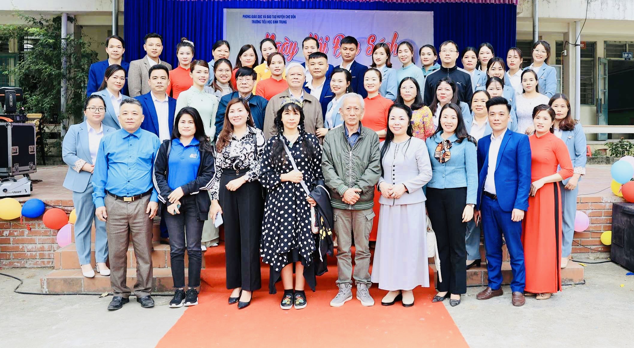 Các văn nghệ sỹ chụp ảnh lưu niệm với giáo viên trường tiểu học Bình Trung, huyện Chợ Đồn, tỉnh Bắc Kạn