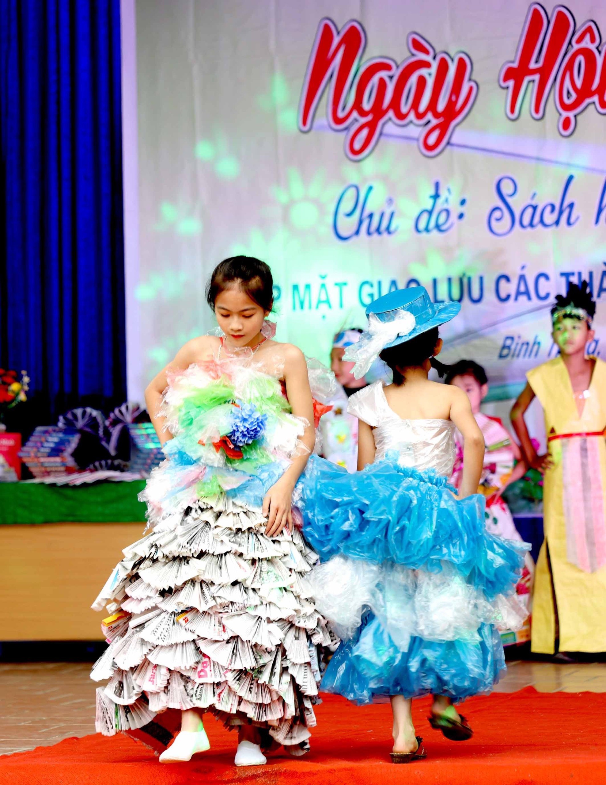 Sau chương trình thi kể chuyện là màn trình diễn thời trang làm bằng giấy bóng và rác thải. Màn trình diễn sôi động của các em học sinh đã góp phân tuyên truyền về việc hạn chế sử dụng đồ nhựa, túi nilong góp phần bảo vệ môi trường.