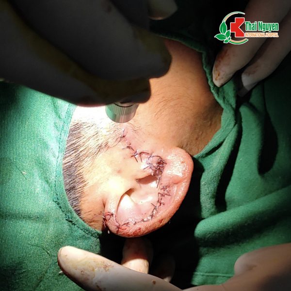 ??Bệnh nhân Vũ Văn V, 30 tuổi, địa chỉ ở Phú Lương, Thái Nguyên đã đến cấp cứu tại Bệnh viện Quốc tế Thái Nguyên trong tình trạng: Vành tai đứt rời gần như hoàn toàn, nguy cơ hoại tử cao.