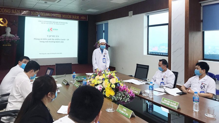 ?Trước diễn biến phức tạp của dịch bệnh Covid-19, nhằm nâng cao kỹ năng phòng dịch của các cán bộ, y bác sỹ, ngày 18/2, Bệnh viện Quốc tế Thái Nguyên thuộc Công ty Cổ phần Bệnh viện Quốc tế Thái Nguyên đã tổ chức tập huấn “Phòng và kiểm soát lây nhiễm Covid -19 trong môi trường bệnh viện”.