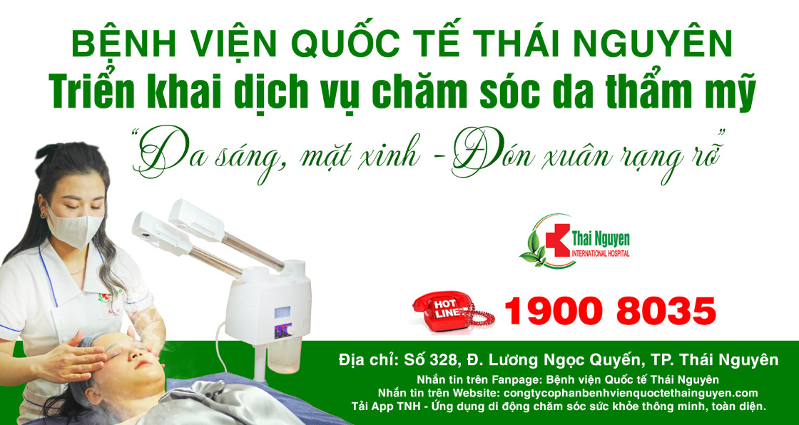 * Dịch vụ chăm sóc da thẩm mỹ tại Bệnh viện Quốc tế Thái Nguyên mang lại làn da tươi trẻ, khoẻ mạnh giúp quý khách hàng tự tin, đón xuân rạng rỡ.