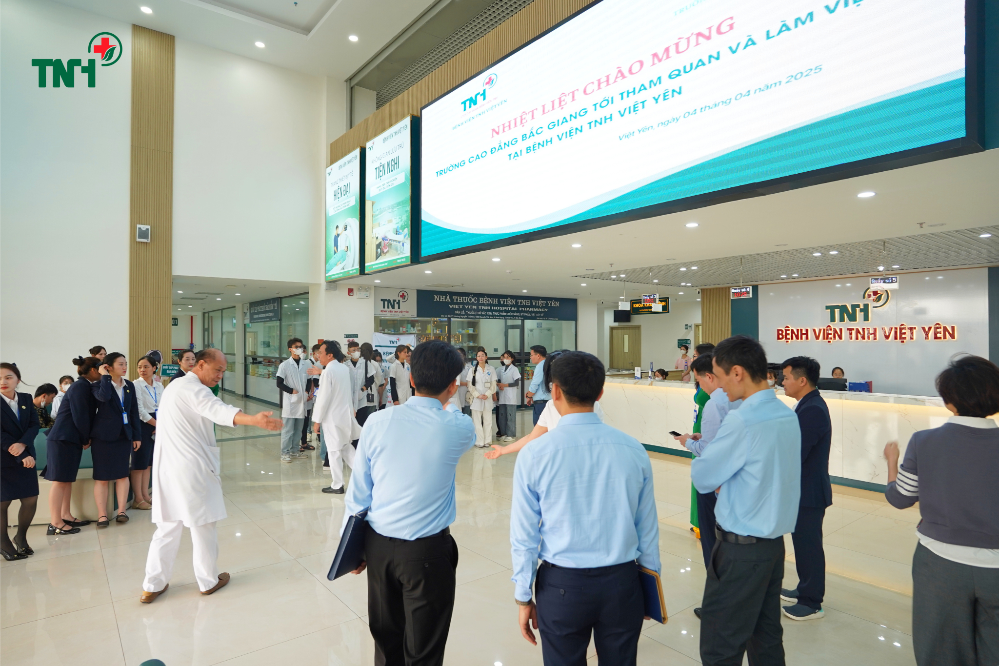 Trong khuôn khổ chương trình, đoàn đại biểu Trường Cao đẳng Bắc Giang đã có chuyến tham quan thực tế tại các khoa, phòng chức năng hiện đại của Bệnh viện TNH Việt Yên. Qua đó giúp sinh viên có cái nhìn trực quan, sinh động về hoạt động chuyên môn trong môi trường y tế thực tế.