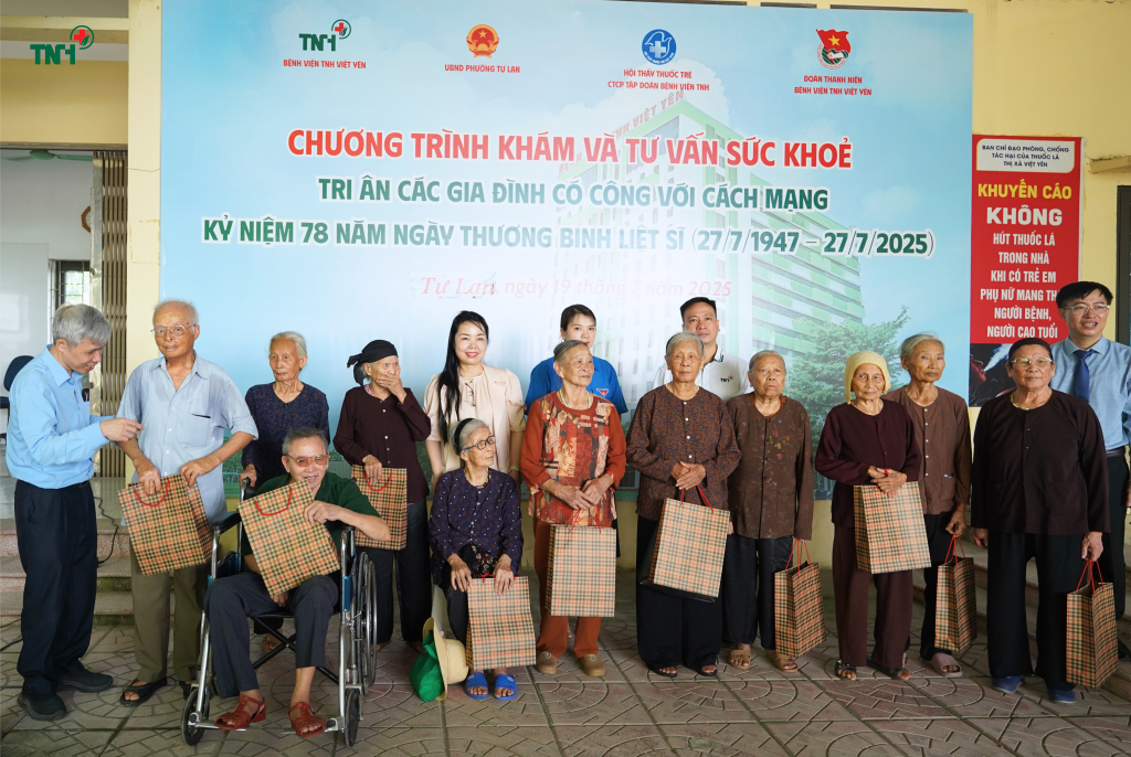 Nhân kỷ niệm 77 năm Ngày Thương binh – Liệt sĩ (27/7/1947 – 27/7/2025), Tập đoàn Bệnh viện TNH phối hợp cùng Đảng ủy, Đoàn Thanh niên, Hội Thầy thuốc trẻ đã tổ chức chương trình khám, tư vấn sức khỏe miễn phí dành cho các gia đình chính sách tại Trạm Y tế Hương Mai – phường Tự Lạn, tỉnh Bắc Ninh vào sáng 19/7/2025.