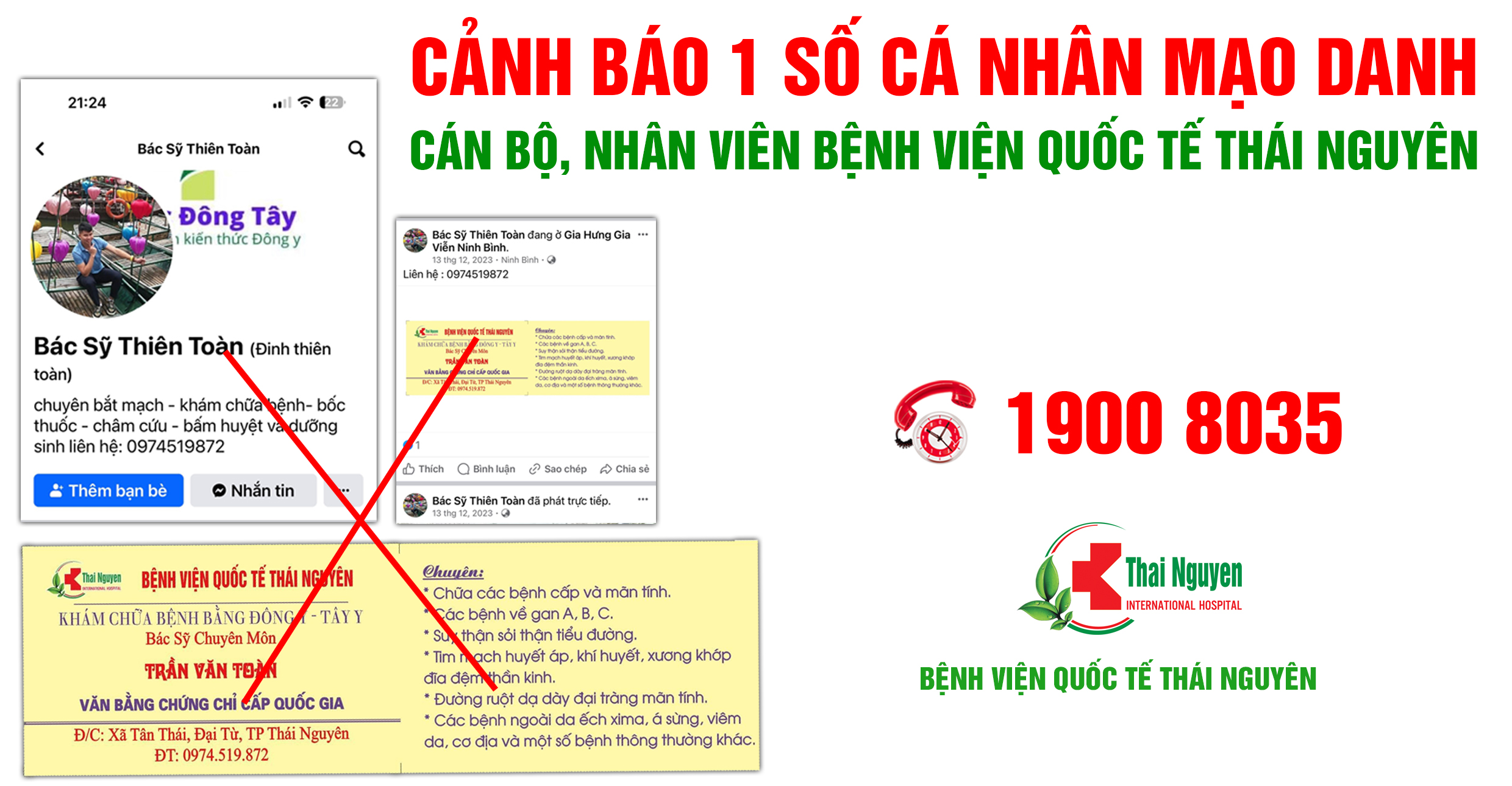CẢNH BÁO 1 SỐ CÁ NHÂN MẠO DANH CÁN BỘ, NHÂN VIÊN BỆNH VIỆN QUỐC TẾ THÁI NGUYÊN