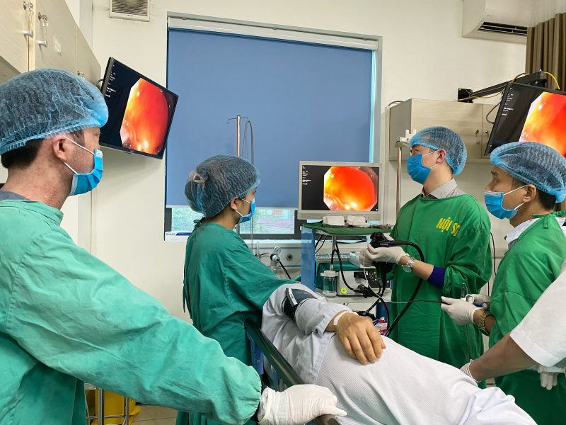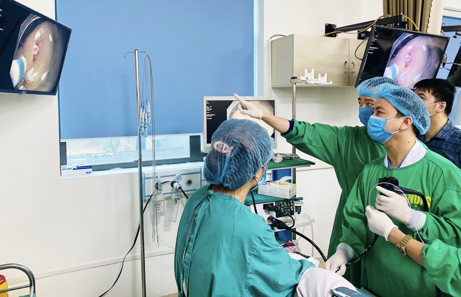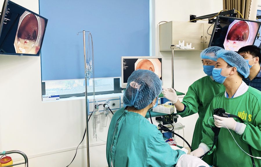 Thạc sỹ, Bác sỹ Trần Đức Cảnh tiến hành hướng dẫn và trực tiếp thực hiện kỹ thuật về nội soi chẩn đoán và điều trị ung thư sớm đường tiêu hóa.