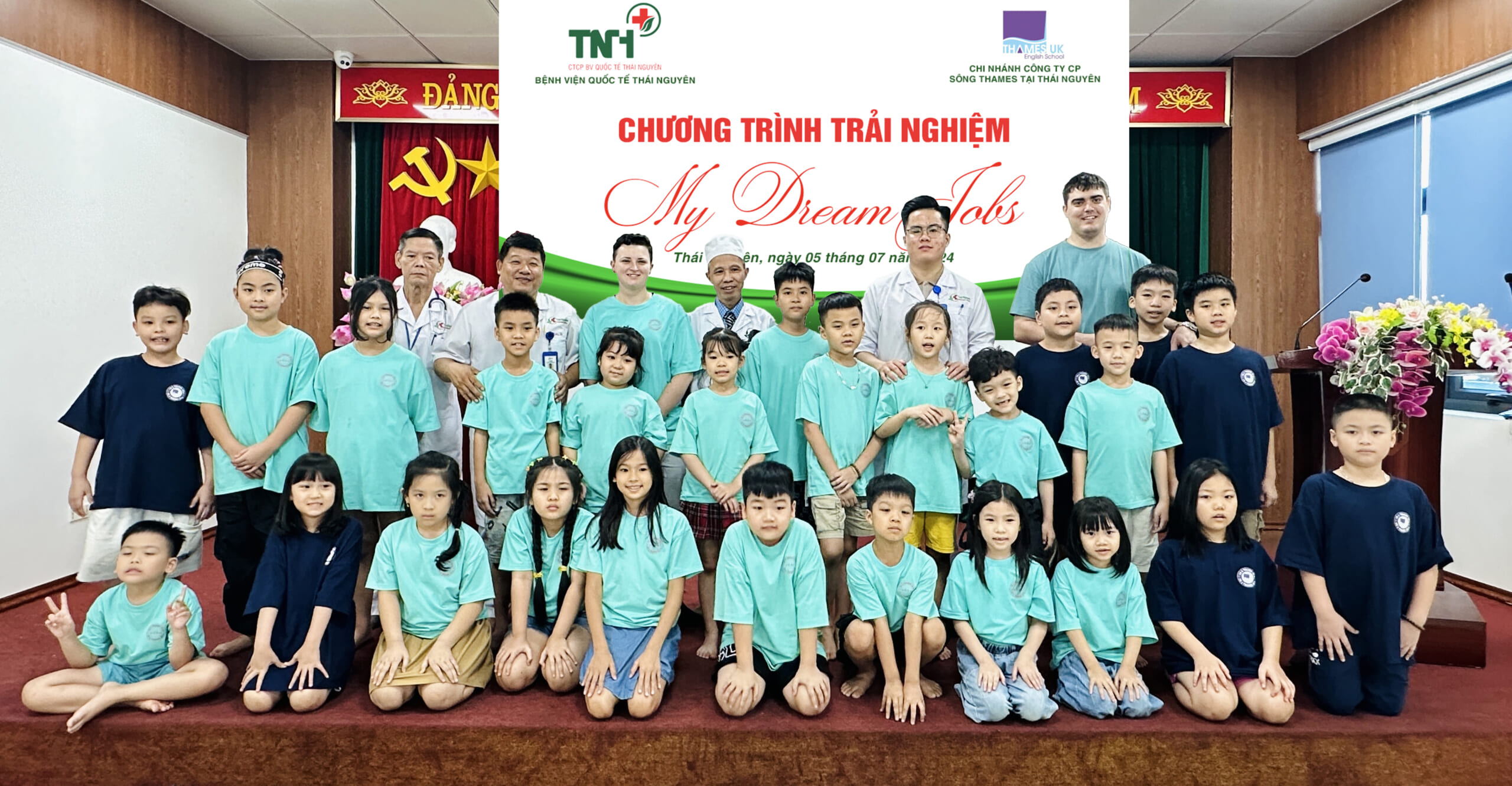 Ngày 05/7/2024, Bệnh viện Quốc tế Thái Nguyên trực thuộc Công ty CP Bệnh viện Quốc tế Thái Nguyên (TNH) phối hợp với Trung tâm ngoại ngữ Thames UK tổ chức chương trình trải nghiệm My dream jobs cho các em học sinh của trung tâm với chủ đề là ngành nghề bác sĩ.