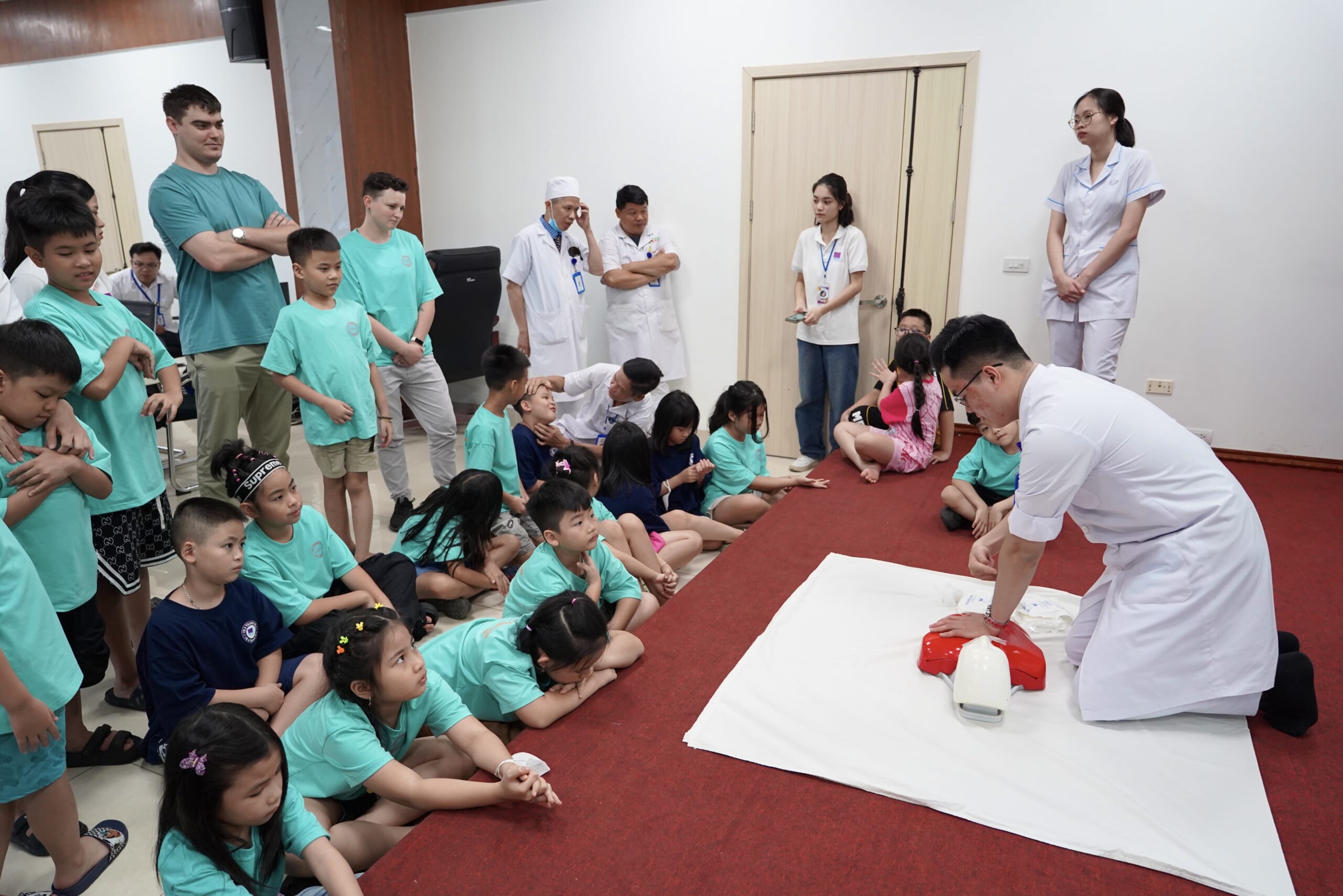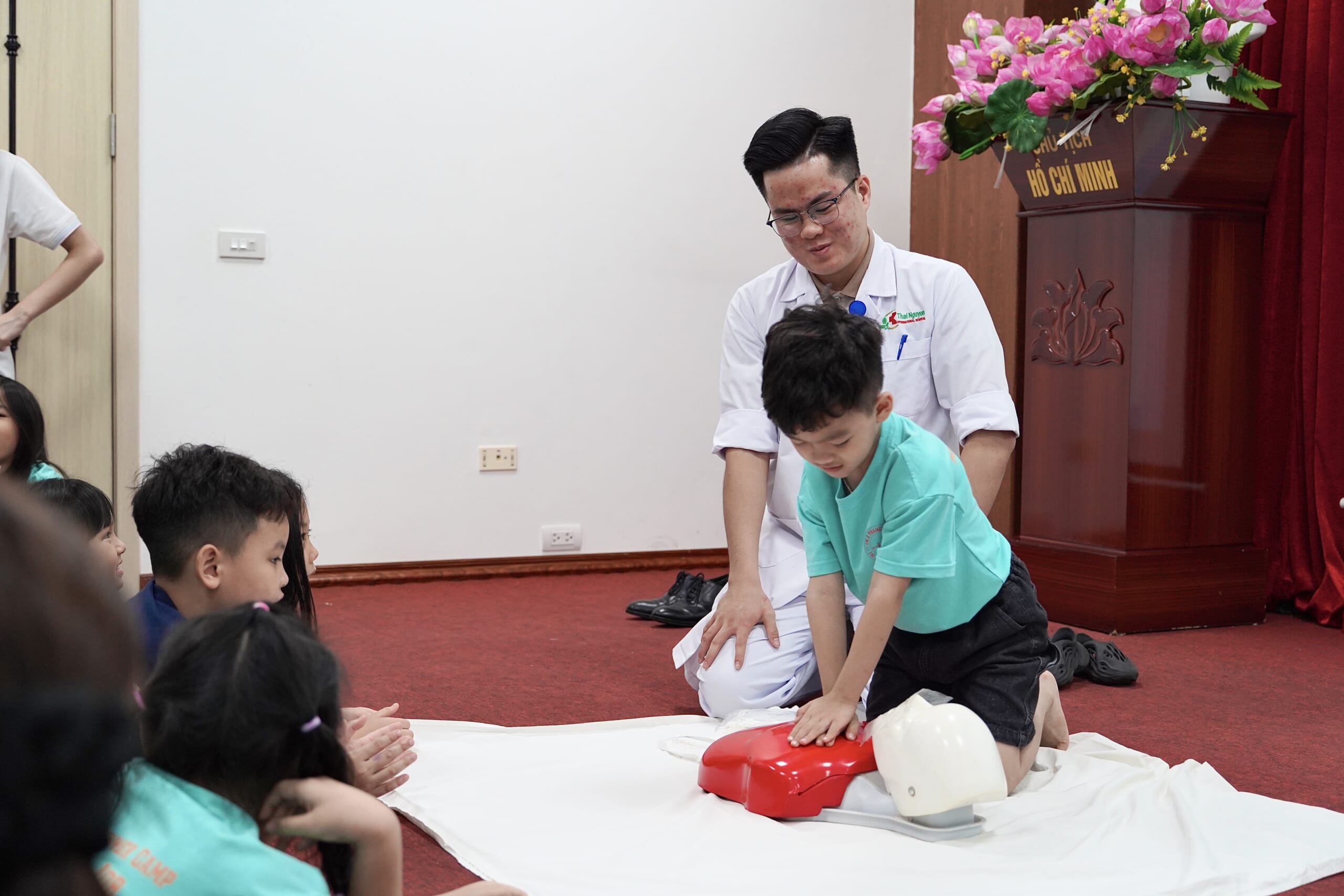 Cũng tại chương trình trải nghiệm, các bác sĩ đã giới thiệu 2 phương pháp: Cấp cứu hồi sinh tim phổi trẻ em và Xử trí hóc dị vật bằng nghiệm pháp Heimlich đồng thời hướng dẫn cho các em thực hành 2 phương pháp trên. Các em học sinh đều vô cùng thích thú khi được làm quen với những điều mới mẻ của ngành y, được bổ sung thêm nhiều kiến thức bổ ích giúp phòng tránh cho bản thân và cấp cứu, hỗ trợ những người xung quanh khi có sự cố xảy ra.