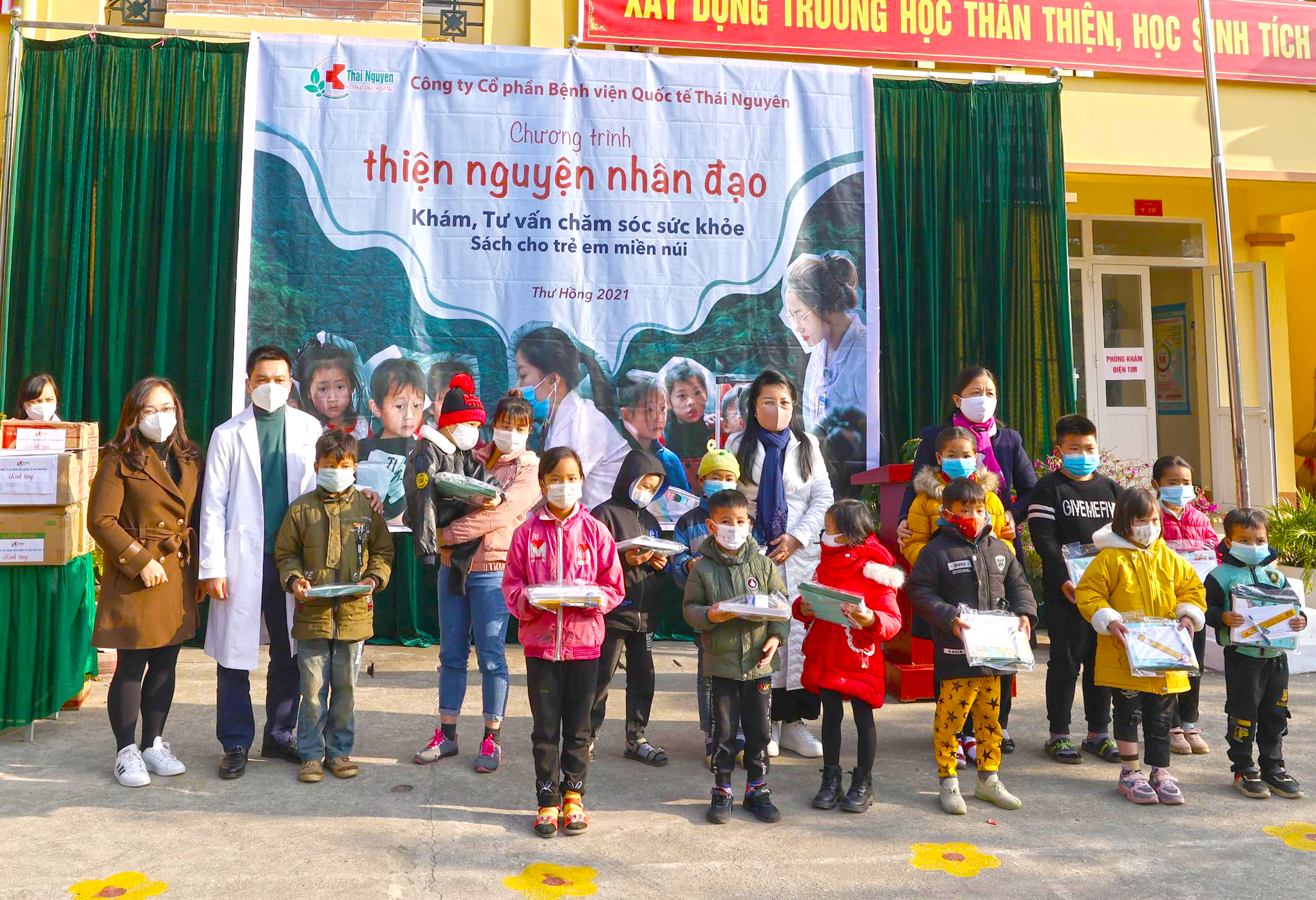 Thực hiện kế hoạch Công tác Xã hội năm 2021, ngày 19/12, Công ty Cổ phần Bệnh viện Quốc tế Thái Nguyên đã tổ chức Chương trình Thiện nguyện nhân đạo năm 2021 cho học sinh, giáo viên trường tiểu học TT Nà Phặc và nhân dân xã Trung Hòa, huyện Ngân Sơn, tỉnh Bắc Kạn tại điểm trường tiểu học TT Nà Phặc. Đồng hành cùng chương trình còn có các bạn sinh viên thiện nguyện đang học tại các trường Đại học ở Hà Nội, Nhà xuất bản Kim Đồng và các nhà hảo tâm.
