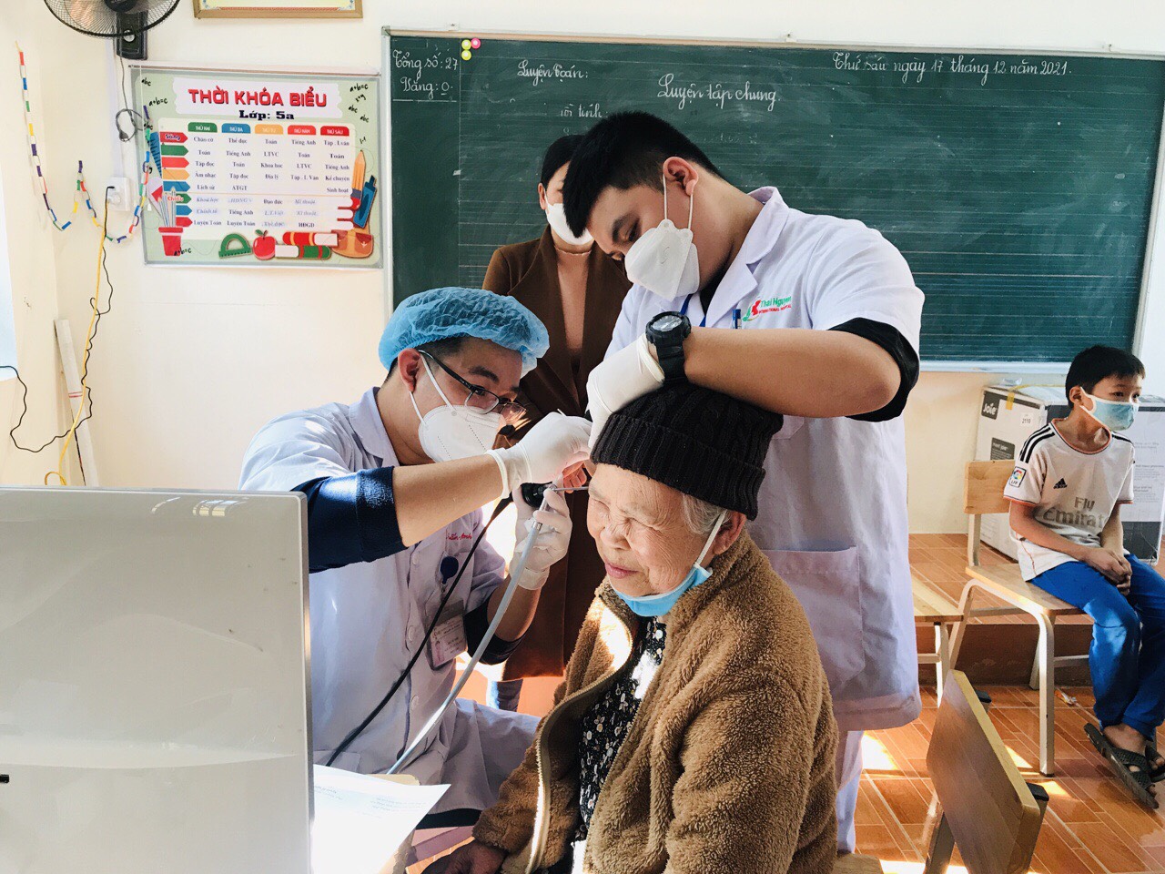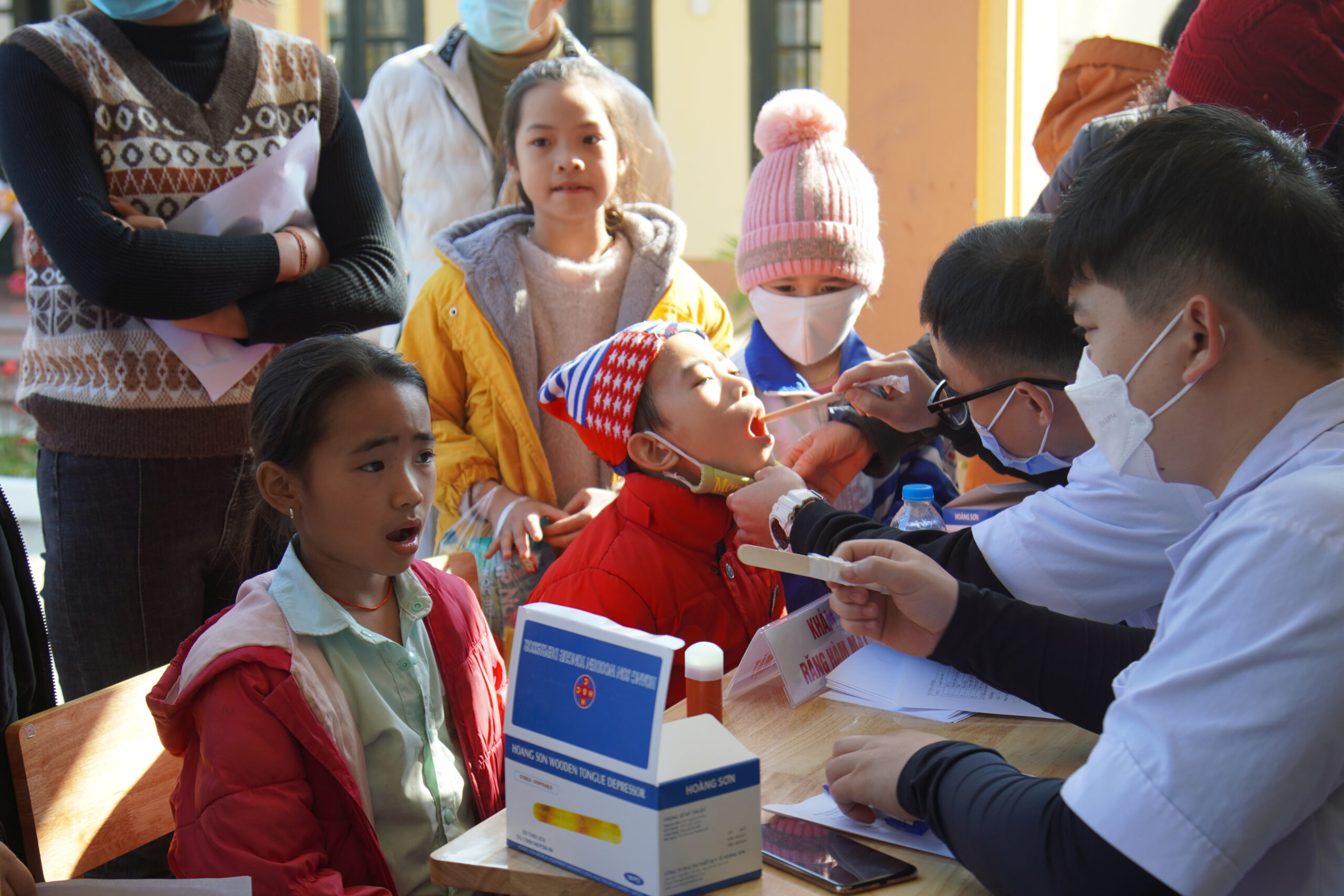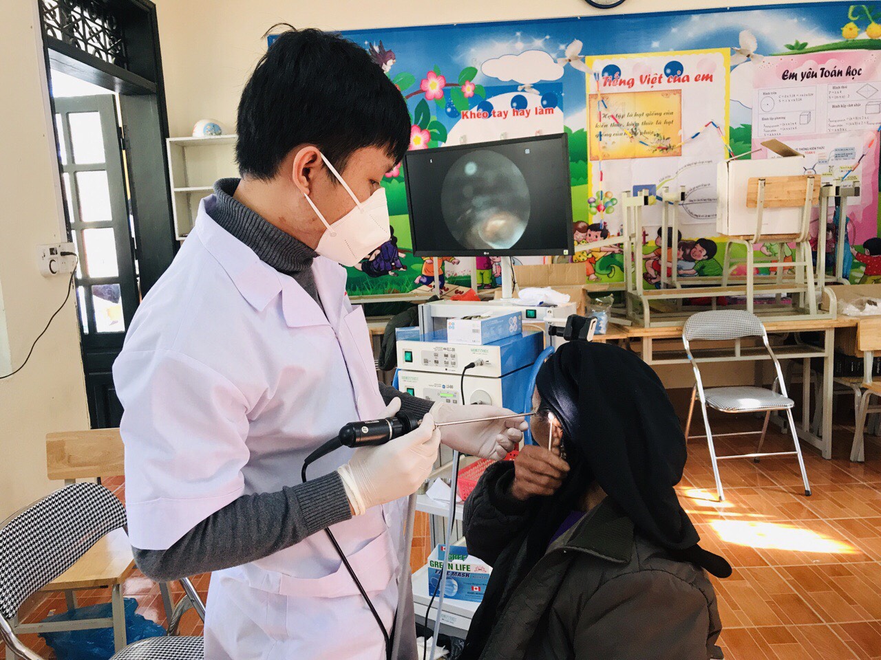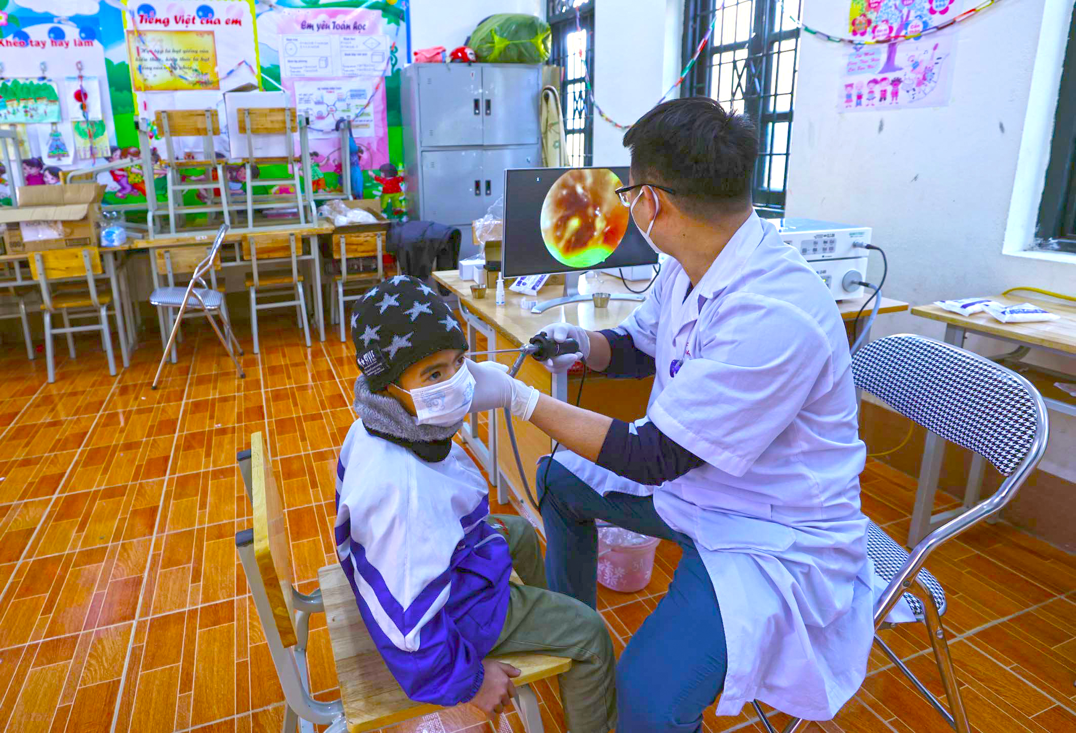 Các em học sinh được bác sĩ khám bệnh Tai- mũi- họng giúp phát hiện và phòng tránh các bệnh về đường hô hấp