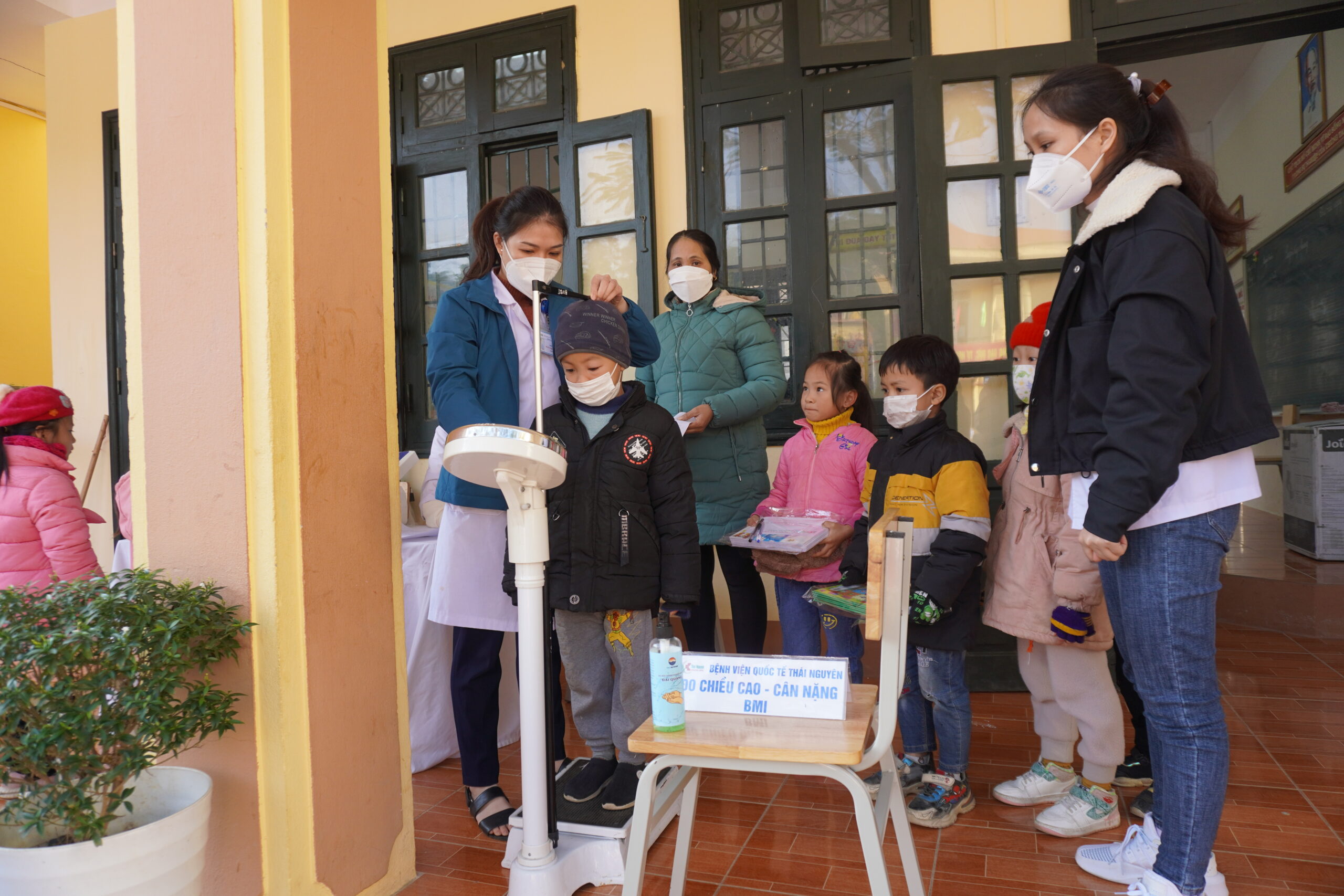 Các em học sinh đuợc bác sĩ thăm khám tận tình, tư vấn chế độ dinh dưỡng phù hợp để phát triển thể lực tốt nhất.