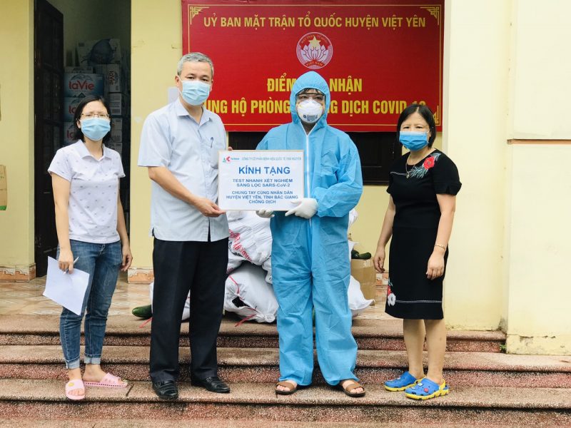 Tiếp tục hành trình chung tay cùng tâm dịch Bắc Giang chống dịch, ngày 21/5/2021 các cán bộ, nhân viên Công ty Cổ phần Bệnh viện Quốc tế Thái Nguyên đã có mặt tại huyện Việt Yên, tỉnh Bắc Giang – điểm nóng nhất trên cả nước về dịch bệnh Covid-19 hiện nay để trao tặng 400 bộ test nhanh xét nghiệm sàng lọc SARS-CoV-2. Đây là hành động thể hiện nghĩa cử cao đẹp “tương thân tương ái” của dân tộc Việt Nam.