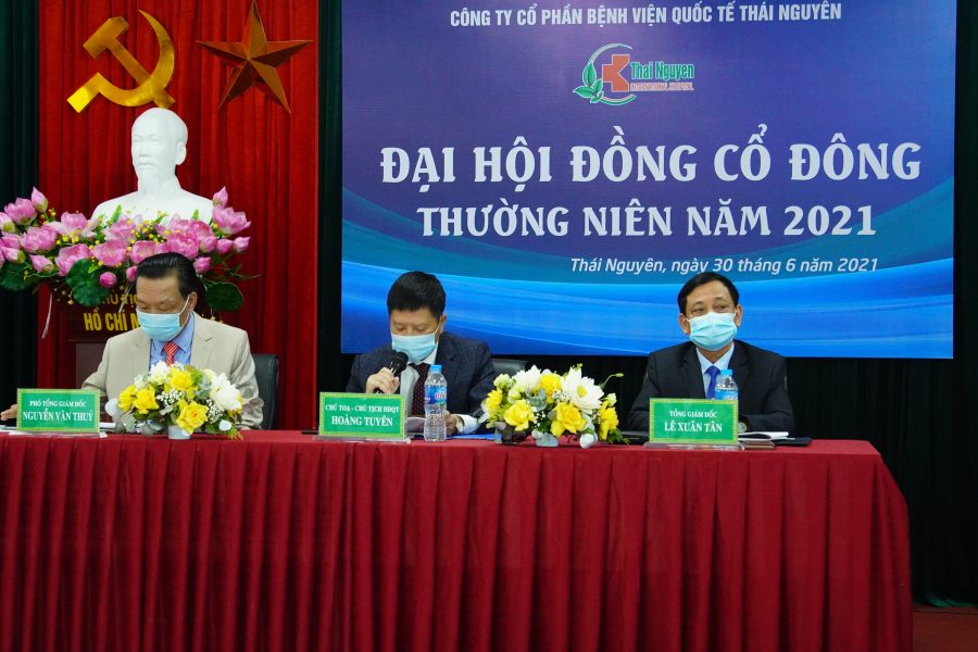 Phát biểu bế mạc Đại hội, ông Hoàng Tuyên – Chủ tịch Hội đồng Quản trị Công ty cảm ơn quý cổ đông đã tham gia cuộc họp và luôn hỗ trợ, ủng hộ, đồng hành với Công ty Cổ phần Bệnh viện Quốc tế Thái Nguyên. Đây là lần đầu tiên Công ty Cổ phần Bệnh viện Quốc tế Thái Nguyên tổ chức Đại hội đồng cổ đông theo hình thức trực tuyến, Công ty mong nhận được sự góp ý của cổ đông để tiếp tục hoàn thiện công tác tổ chức, tạo thuận lợi cho cổ đông thực hiện quyền của mình.