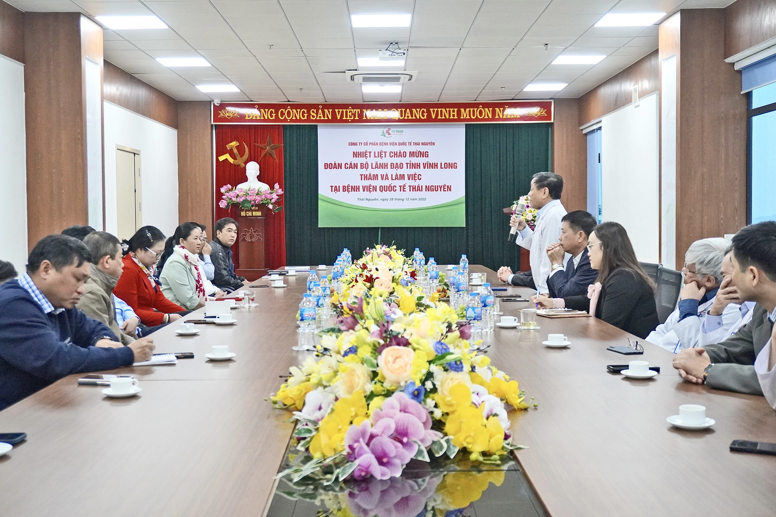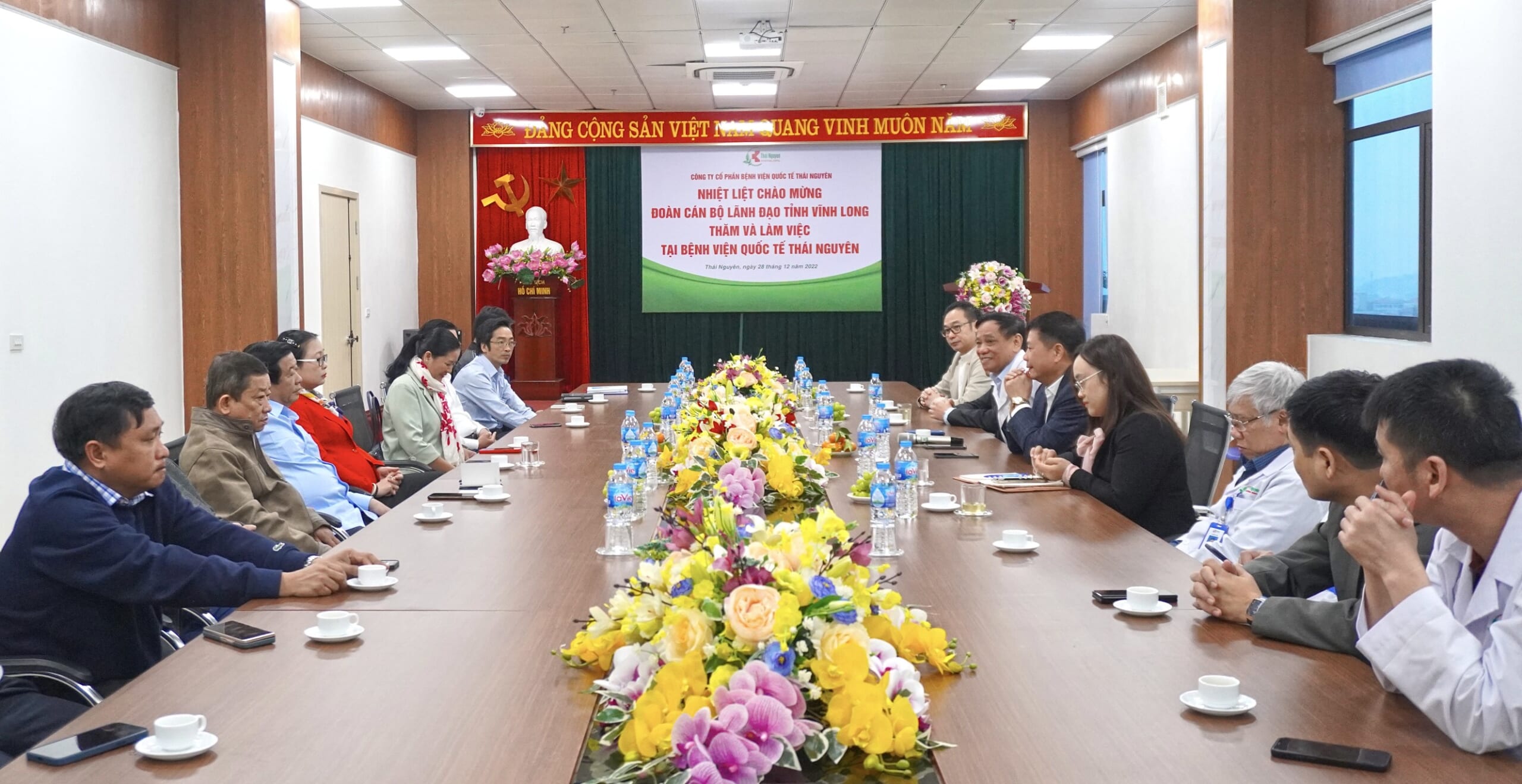 Ngày 28/12/2022, Đoàn cán bộ lãnh đạo tỉnh Vĩnh Long do đồng chí Bùi Văn Nghiêm – Ủy viên Trung ương Đảng, Bí thư Tỉnh ủy Vĩnh Long làm trưởng đoàn đã đến thăm và làm việc tại Công ty Cổ phần Bệnh viện Quốc tế Thái Nguyên (TNH). Tiếp và làm việc với đoàn có ông Hoàng Tuyên, Chủ tịch Hội đồng quản trị TNH, Thầy thuốc Nhân dân, Bác sỹ Cao cấp Lê Xuân Tân,Tổng Giám đốc TNH.