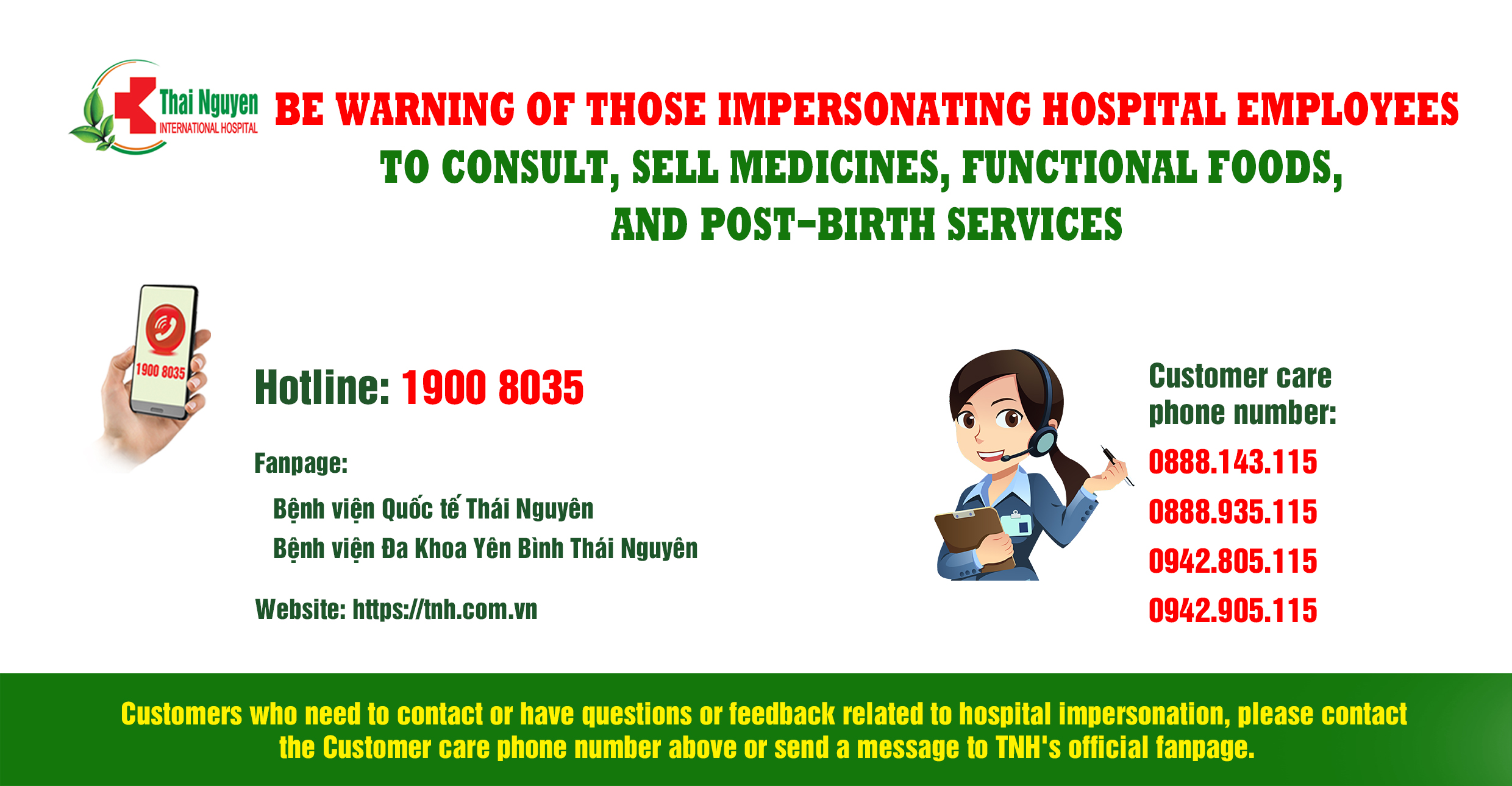 Recently, Thai Nguyen International Hospital Joint Stock Company (TNH) has received many complaints from patients and clients about people claiming to be medical staff working at hospitals belonging to the Company or a third party that has a connection with the hospital to call for advice on selling functional products, drugs and postpartum services for mothers and babies.