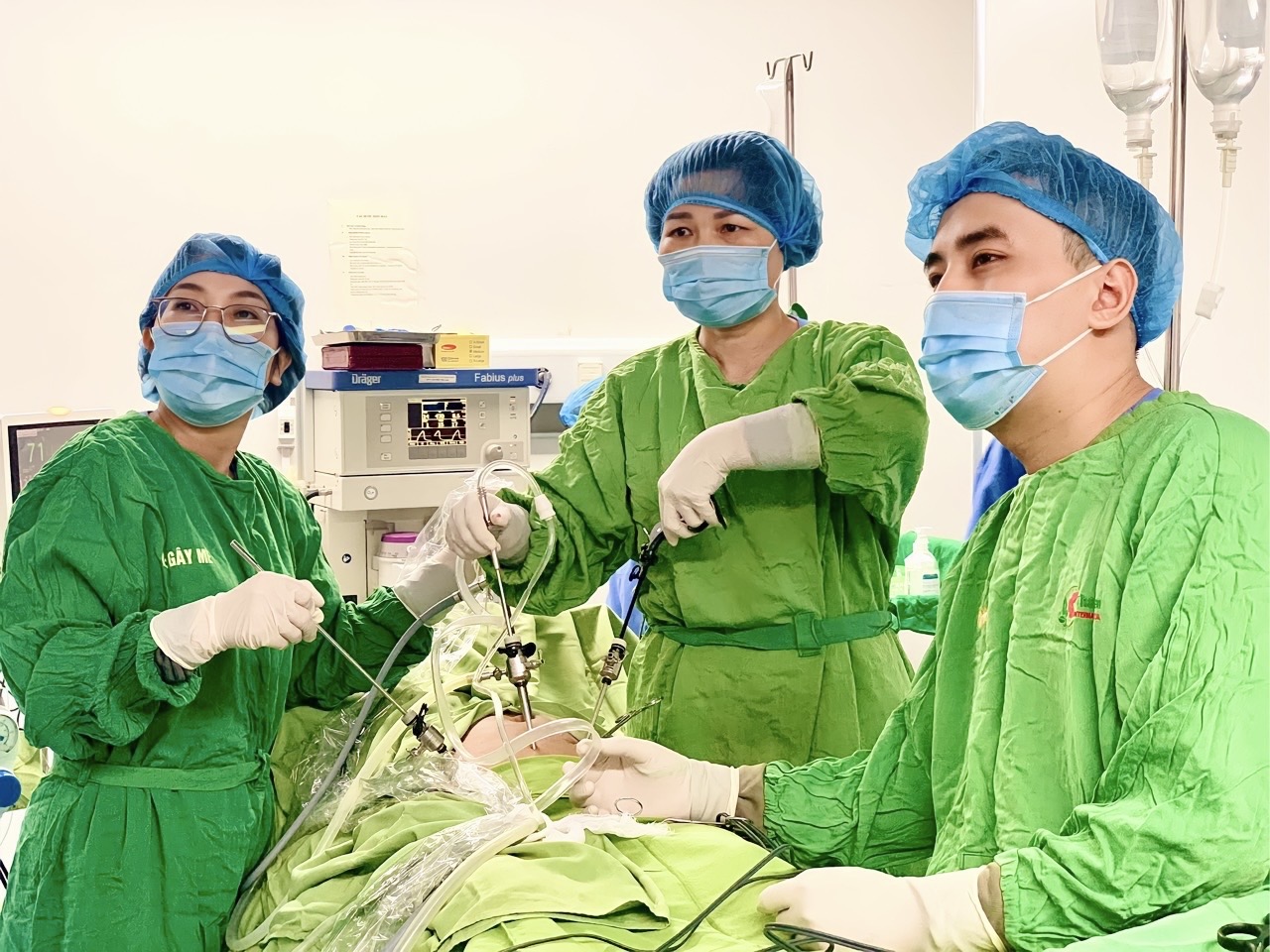 Specialist doctor level 2 Hoang Thi Kim Ngan’s team performing the surgery