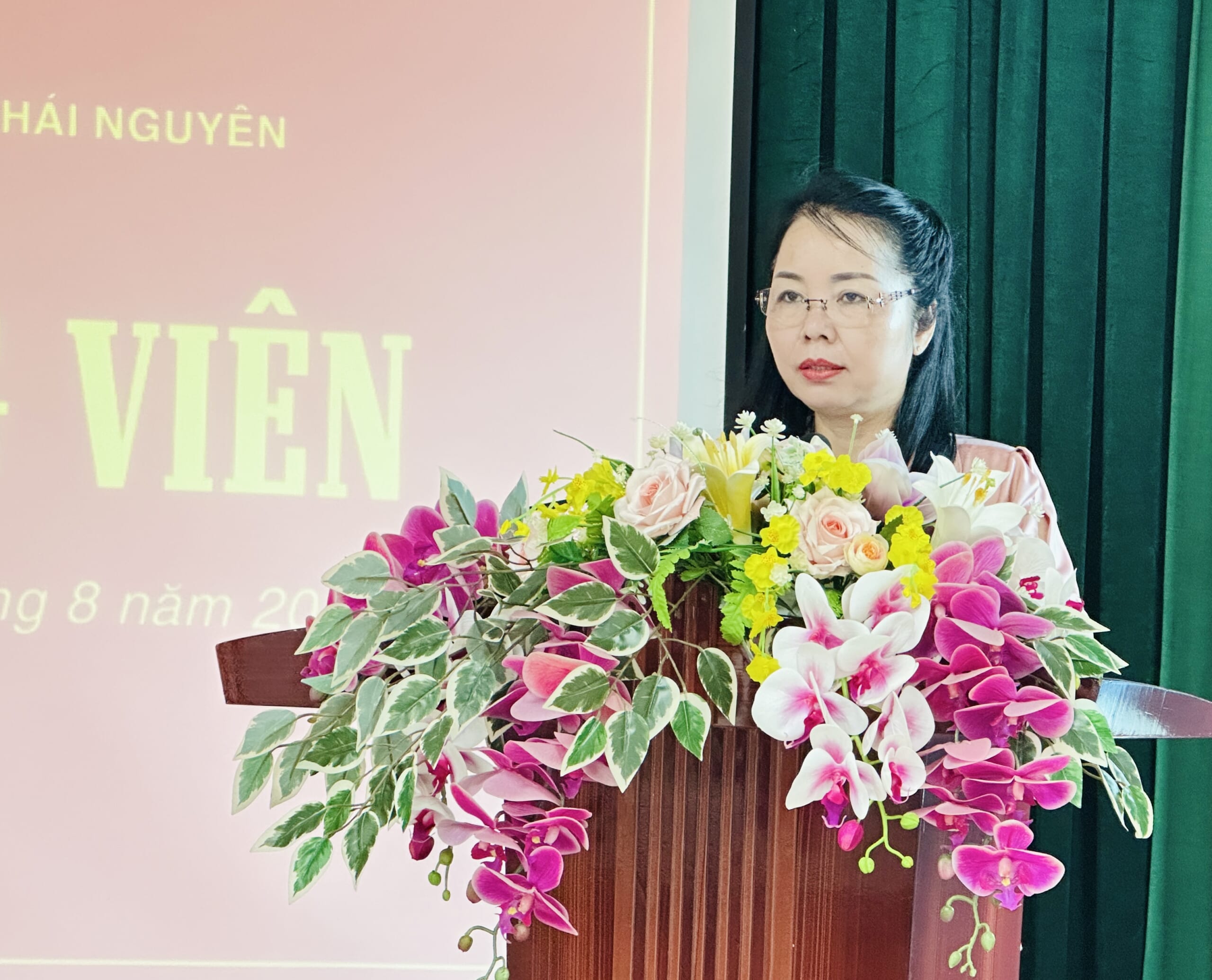 Mrs.Cao Thi Hong, Party Secretary of Thai Nguyen International Hospital Joint Stock Company, is speaking