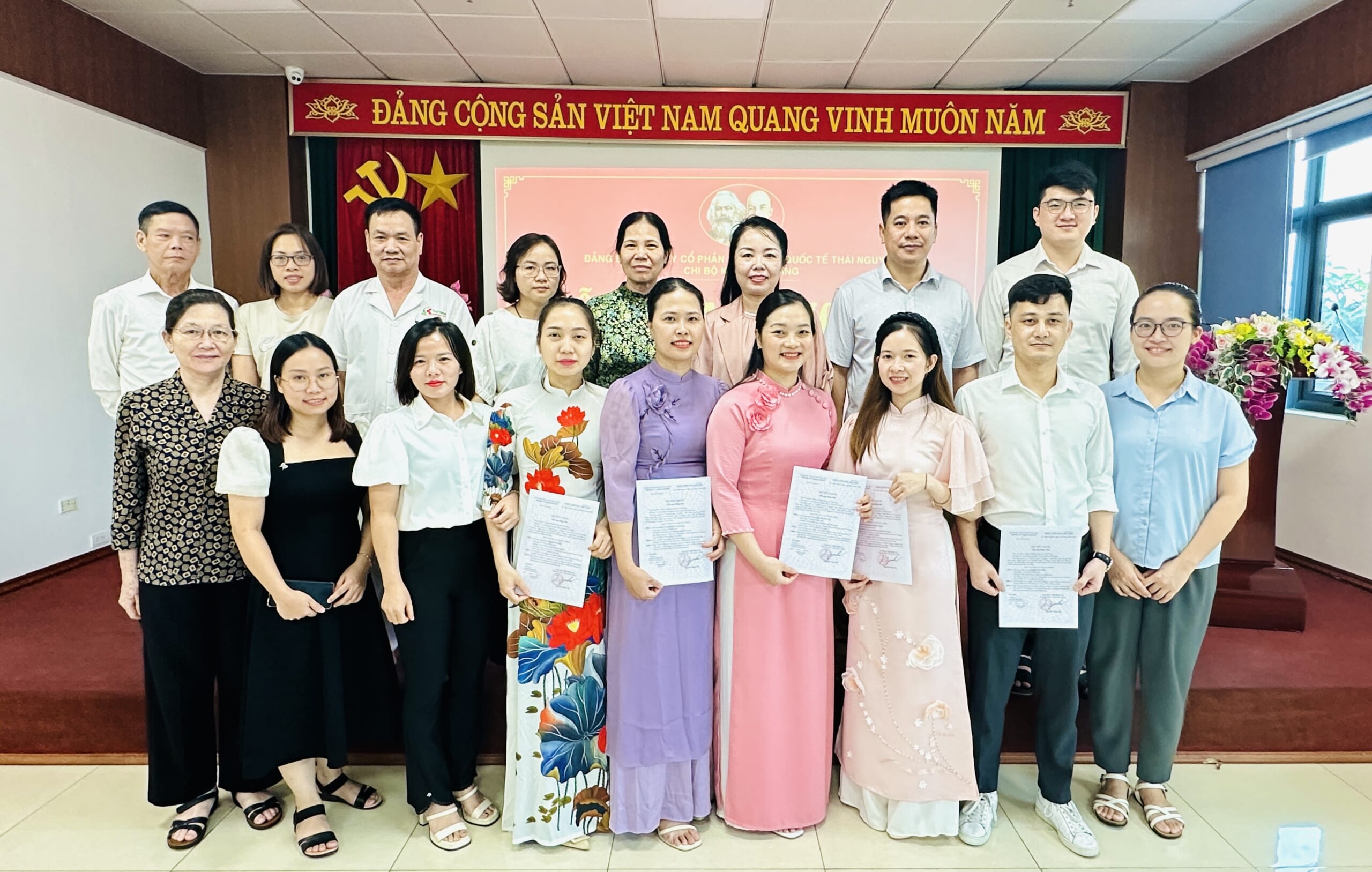Mrs.Cao Thi Hong, Party Secretary of the Company, congratulated the 5 comrades who were admitted to the Party. She also hoped that the new Party members would continue to promote their roles and responsibilities in cultivating, training, striving, studying, improving political awareness and professional capacity, contributing to building a clean and strong Party Cell and performing well the tasks of a Party member.