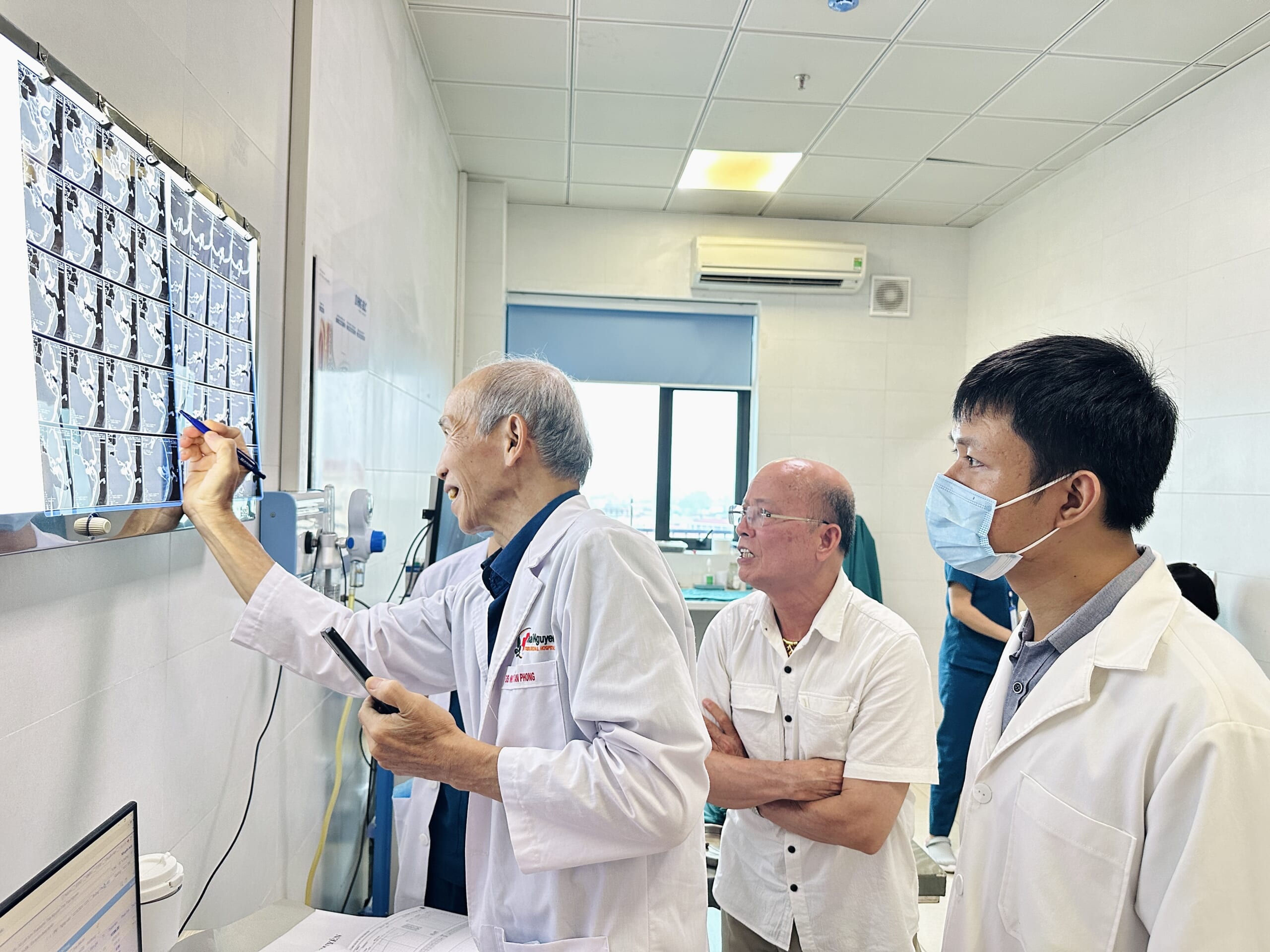 Assoc. Prof. Dr. Nguyen Tan Phong is consulting with ENT doctors at Thai Nguyen International Hospital.