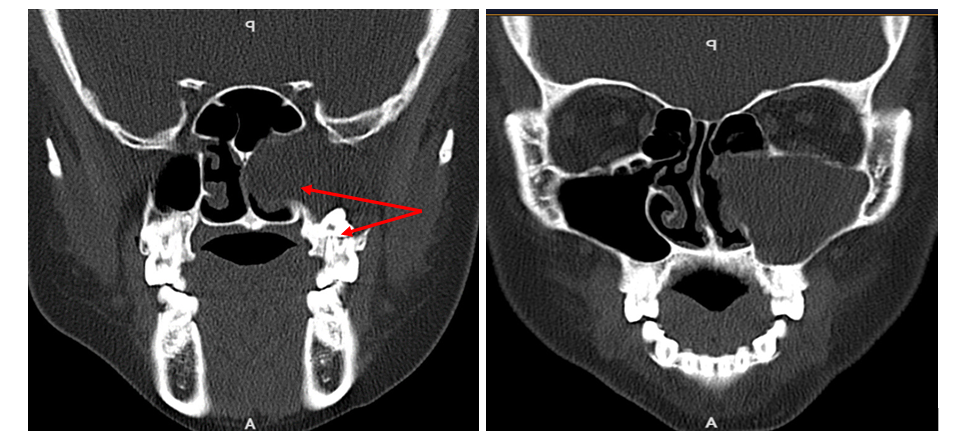 The surgery was successfully performed, removing the entire cyst and removing all the hidden teeth in the left maxillary sinus. After the post-operative treatment period, the patient’s current health condition: stable, no stuffy nose, no headaches, no discomfort and very satisfied with the results of the surgery.