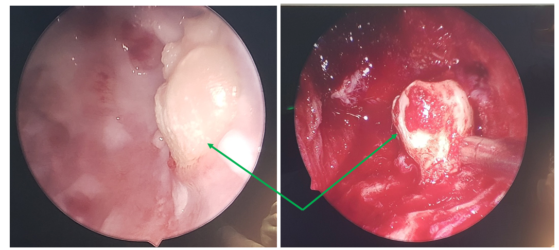 After an interdisciplinary consultation with ENT and Maxillofacial specialists, the doctors concluded: The patient has a left maxillary sinus tumor with teeth growing underground in the sinus that has destroyed the wall of the maxillary sinus, which can affect the near tissues. Diagnosis conclusion: Dental cyst. This is a rare medical case with bone destruction and requires early surgery to avoid dangerous complications. The patient was prescribed surgery to open the maxillary sinus to remove the tumor combined with the extraction of hidden teeth in the sinus. The surgery was performed simultaneously by two surgical teams: Ear-Nose-Throat and Dentistry-Maxillofacial specialists. Determining that this was a complex surgery, the surgical team chose to operate in two ways, combining endoscopic sinus surgery and opening the left maxillary sinus according to the Caldwell-Luc route to expand the surgical field to perform both at the same time to save medical costs and treatment time.