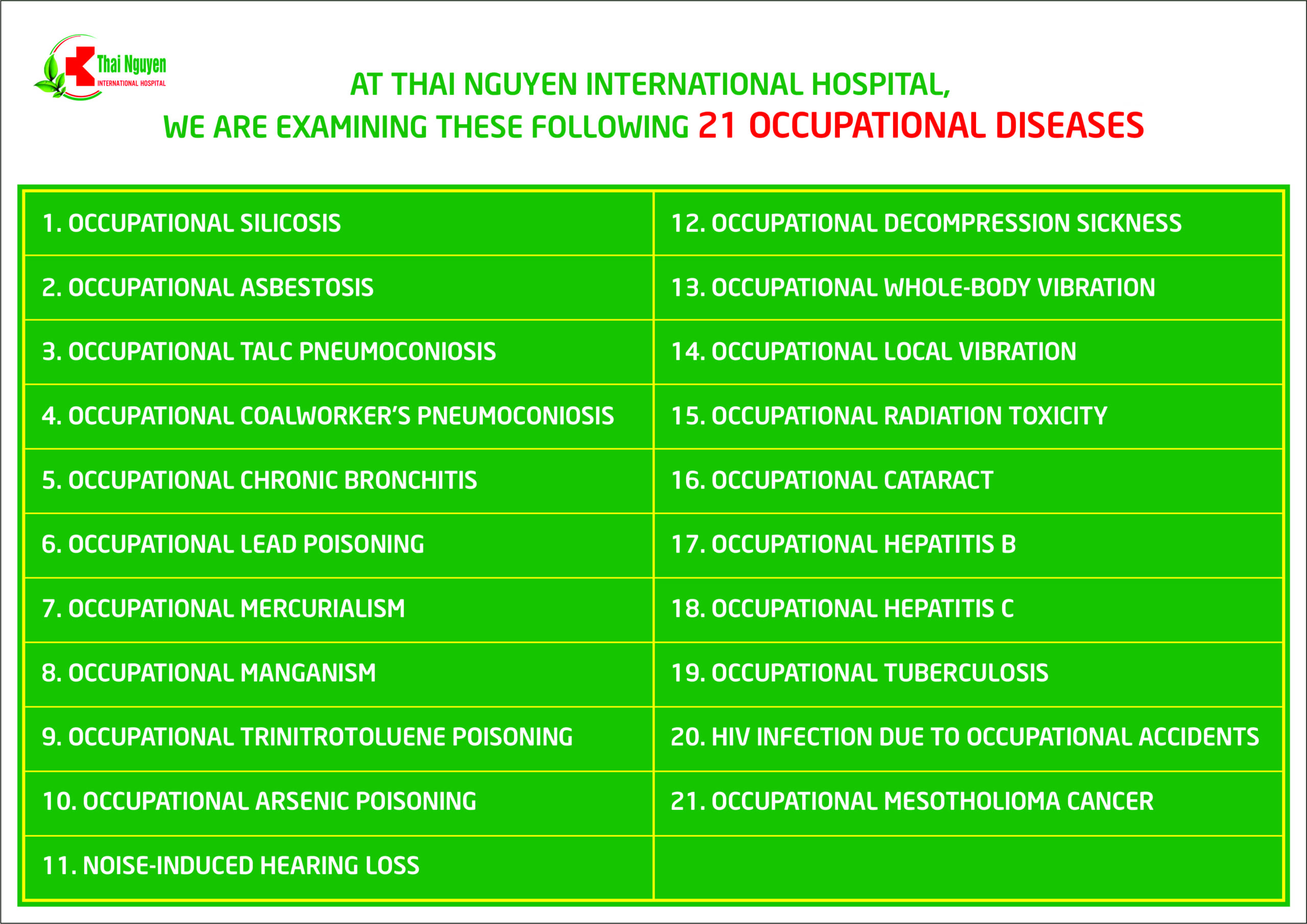 *At Thai Nguyen International Hospital, we are examining these following 21 occupational diseases: