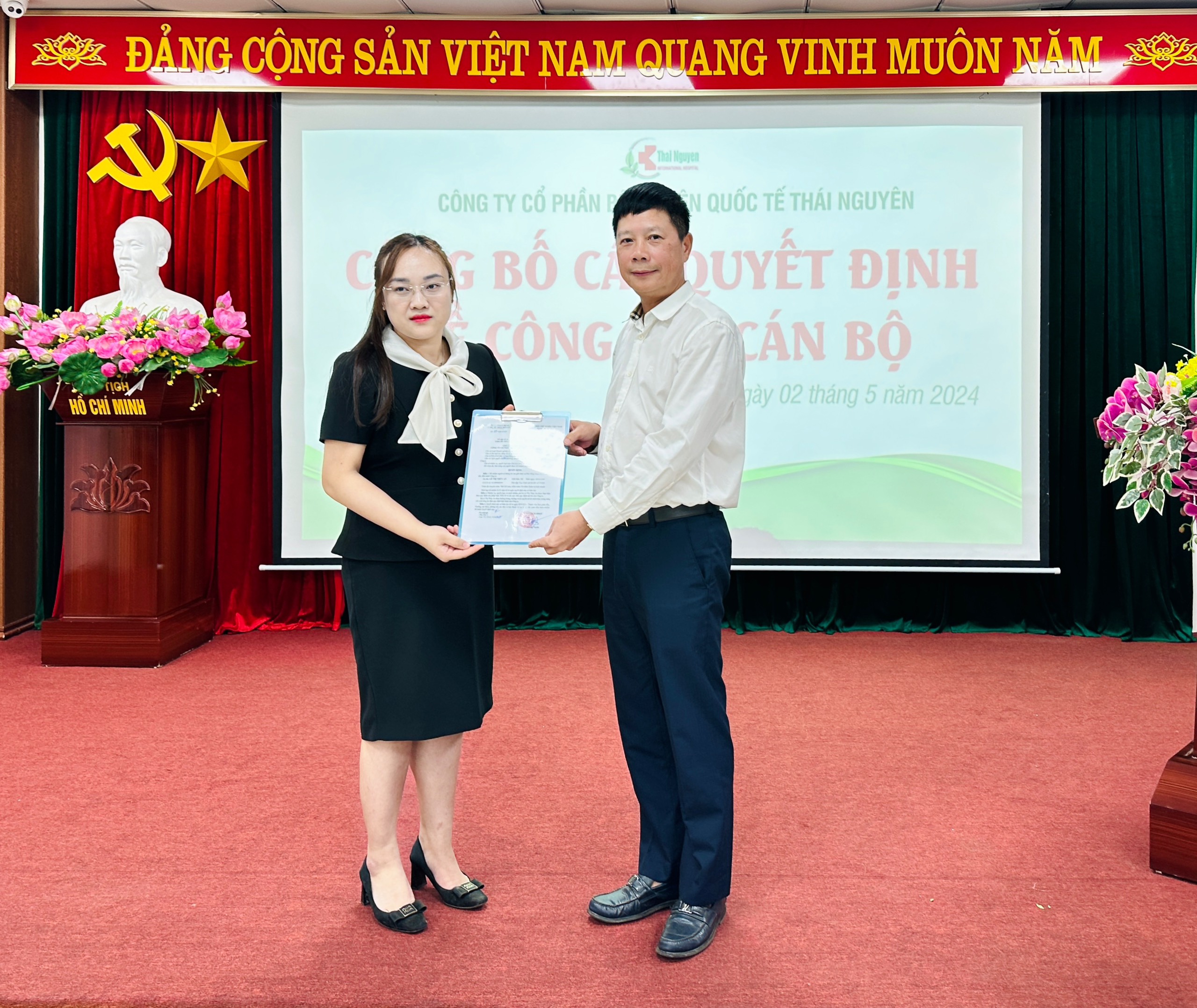 On May 2, 2024, Thai Nguyen International Hospital Joint Stock Company (TNH) held a ceremony to announce the decision to appoint Deputy General Director and CEO of the company for Mrs. Le Thi Thuy An.