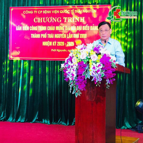 Đại diện Lãnh đạo TP Thái Nguyên và Công ty CP Bệnh viện Quốc tế Thái Nguyên tham dự gắn biển công trình chào mừng Đại hội đại biểu Đảng bộ Thành phố lần thứ XVIII, nhiệm kỳ 2020-2025
