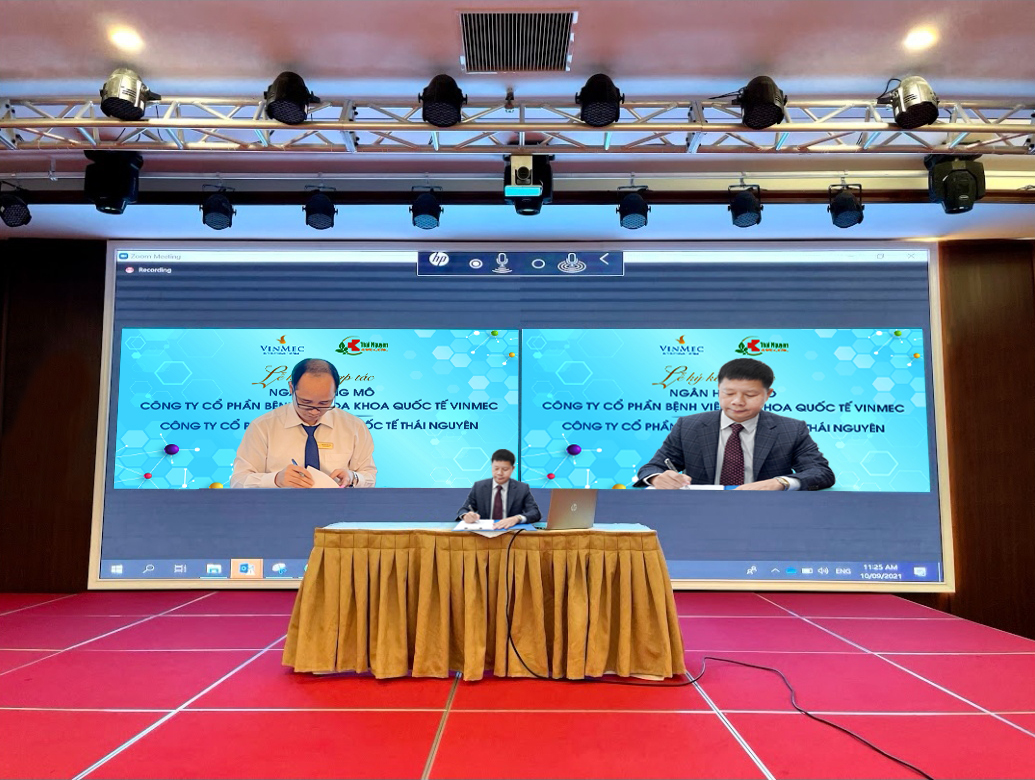 Lễ ký hết thoả thuận hợp tác giữa Ngân hàng Mô Vinmec – Công ty Cổ phần Bệnh viện Đa khoa Quốc tế Vinmec và Công ty Cổ phần Bệnh viện Quốc tế Thái Nguyên