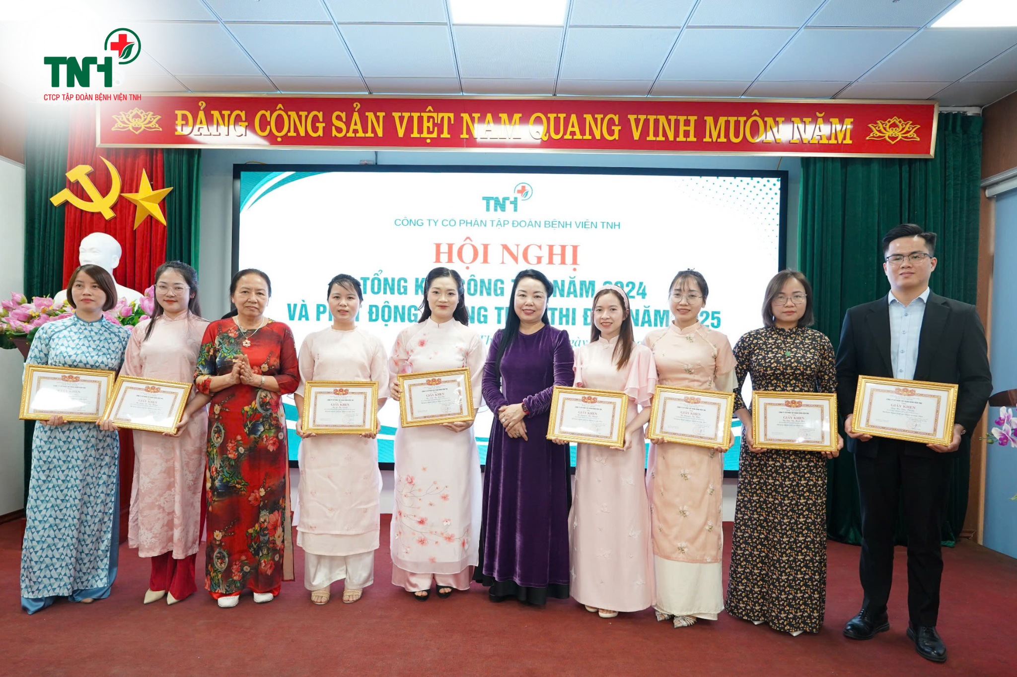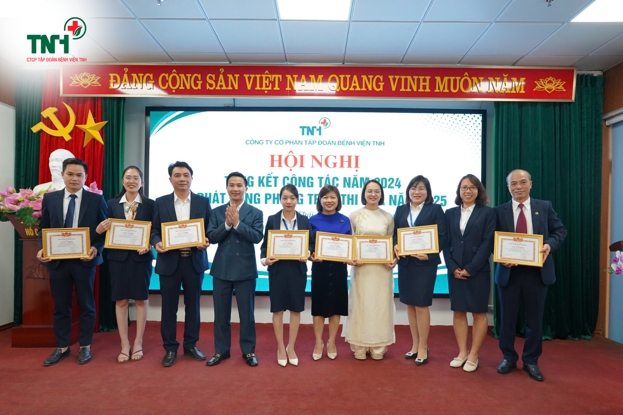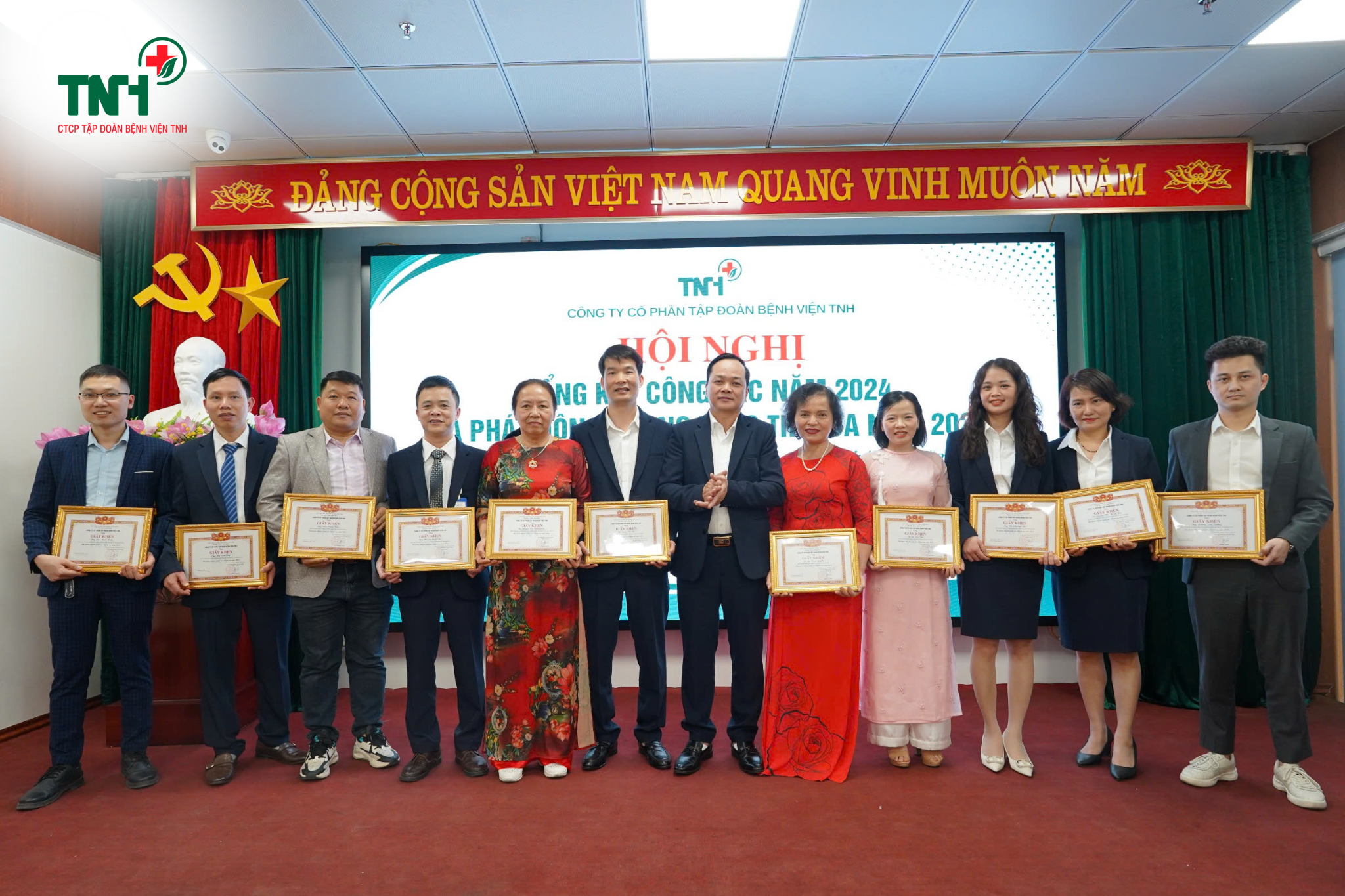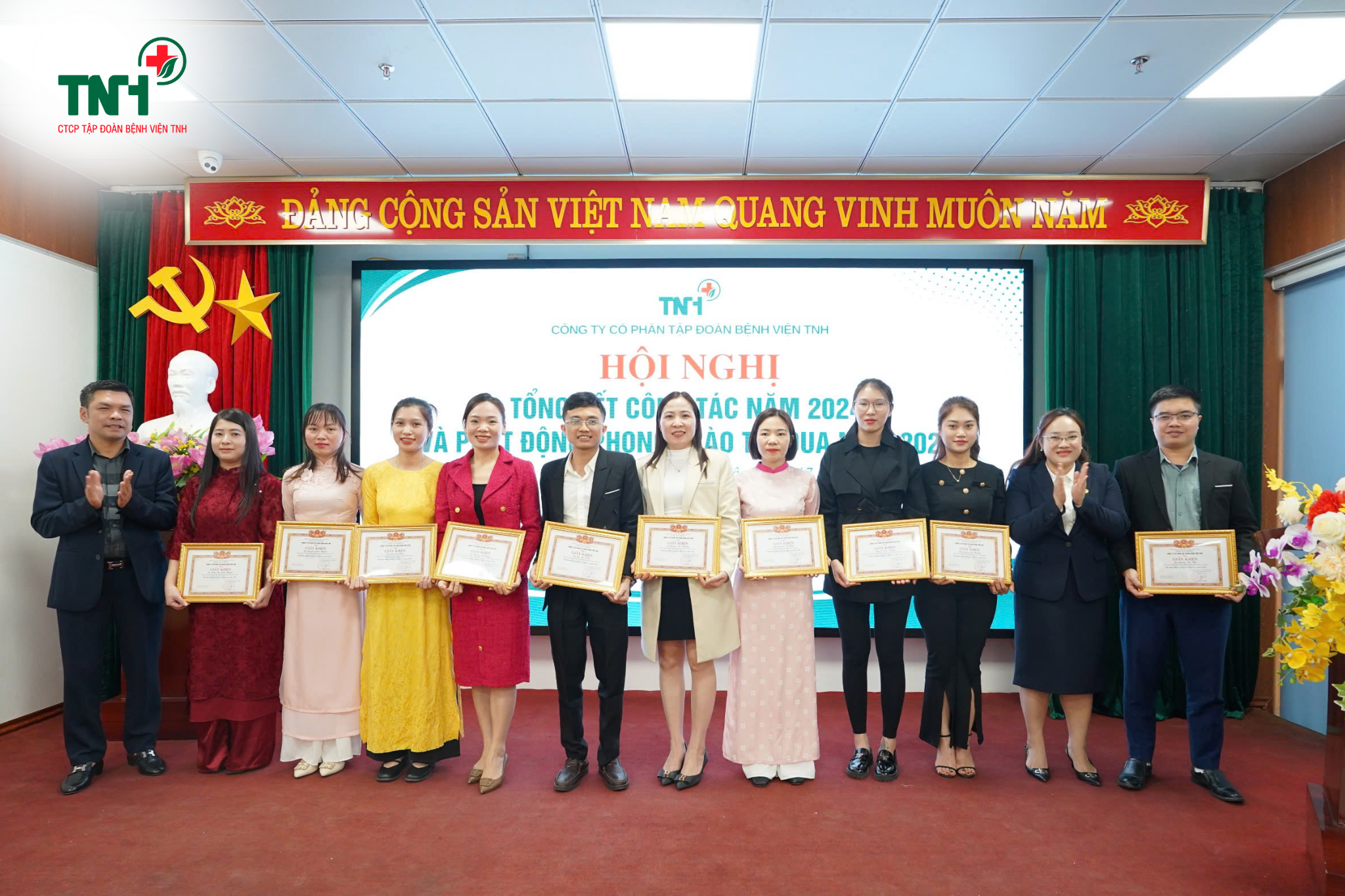 🎊Hội nghị Tổng kết công tác năm 2024 và phát động phong trào thi đua năm 2025 của Tập đoàn Bệnh viện TNH đã để lại nhiều ấn tượng sâu sắc. Đây không chỉ là dịp để nhìn lại những thành tựu đã đạt được năm qua, mà còn là thời điểm mở ra một hành trình mới của toàn thể cán bộ, nhân viên Tập đoàn, quyết tâm tiếp tục nỗ lực, Đoàn kết – Đổi mới – Sáng tạo để vươn đến tầm cao mới: Trở thành một trong những tập đoàn với hệ thống bệnh viện tiên phong trong việc không ngừng nâng cao chất lượng khám chữa bệnh, chăm sóc sức khoẻ nhân dân, góp phần xây dựng và phát triển Y tế Việt Nam.