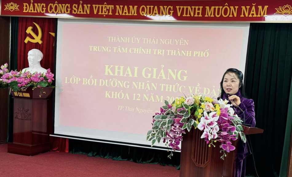 Phát biểu tại Lễ khai giảng, đồng chí Hà Huy Hoàng, Ủy viên Ban Thường vụ Thành ủy – Trưởng Ban Tuyên giáo Thành ủy, Giám đốc Trung tâm Chính trị thành phố Thái Nguyên nhấn mạnh việc thường xuyên chăm lo bồi dưỡng nhận thức về Đảng cho quần chúng ưu tú là để tạo nguồn phát triển Đảng, là một trong những nhiệm vụ quan trọng trong công tác xây dựng Đảng. Từ đó góp phần nâng cao chất lượng, sức chiến đấu tổ chức cơ sở Đảng và đội ngũ cán bộ đảng viên, đảm bảo sự kế thừa và phát triển của Đảng. Đồng chí đề nghị cán bộ, giảng viên Trung tâm Chính trị thành phố Thái Nguyên làm tốt công tác quản lý lớp học, quản lý học viên, tạo điều kiện về cơ sở vật chất, trang thiết bị tốt nhất để các học viên tham gia học tập. Trên cơ sở đó, mỗi học viên phải xác định được cho mình động lực phấn đấu vào Đảng đúng đắn, nghiêm túc thực hiện nội quy, quy chế của lớp học; trong quá trình tham gia học tập, cần nghiên cứu kiến thức, gắn với thực tế ở địa phương. Sau khi kết thúc khóa học trở về địa phương, đơn vị công tác, các học viên tiếp tục vận dụng những kiến thức lý luận đã được học vào thực tiễn, không ngừng rèn luyện bản lĩnh chính trị, đạo đức lối sống, nêu cao tinh thần trách nhiệm, phấn đấu sớm được đứng trong hàng ngũ của Đảng.