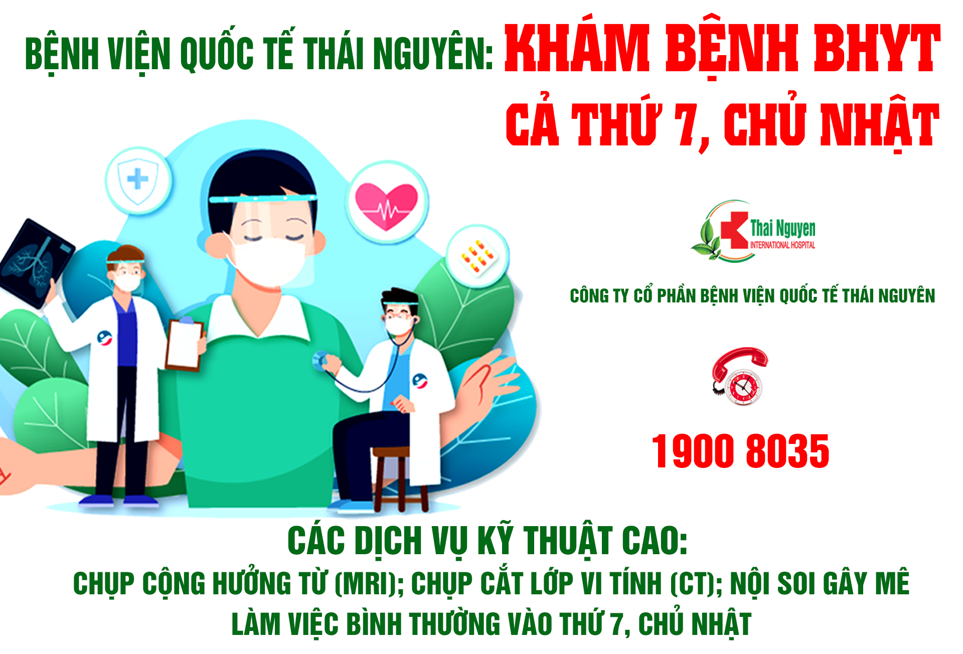 ?? Bệnh viện Quốc tế Thái Nguyên thực hiện khám, chữa bệnh cho người có thẻ BHYT tất cả các ngày trong tuần (bao gồm cả Thứ Bảy, Chủ Nhật).