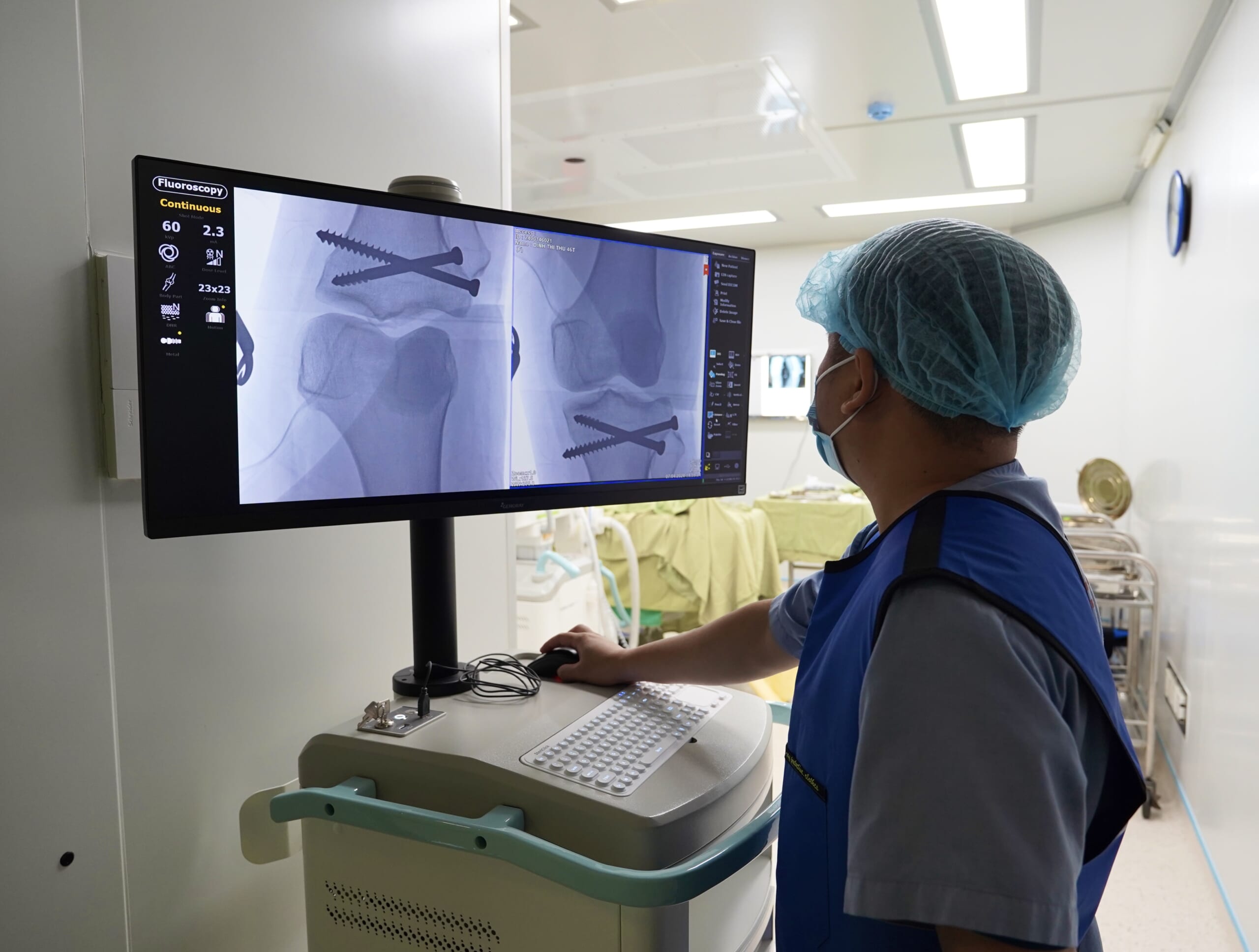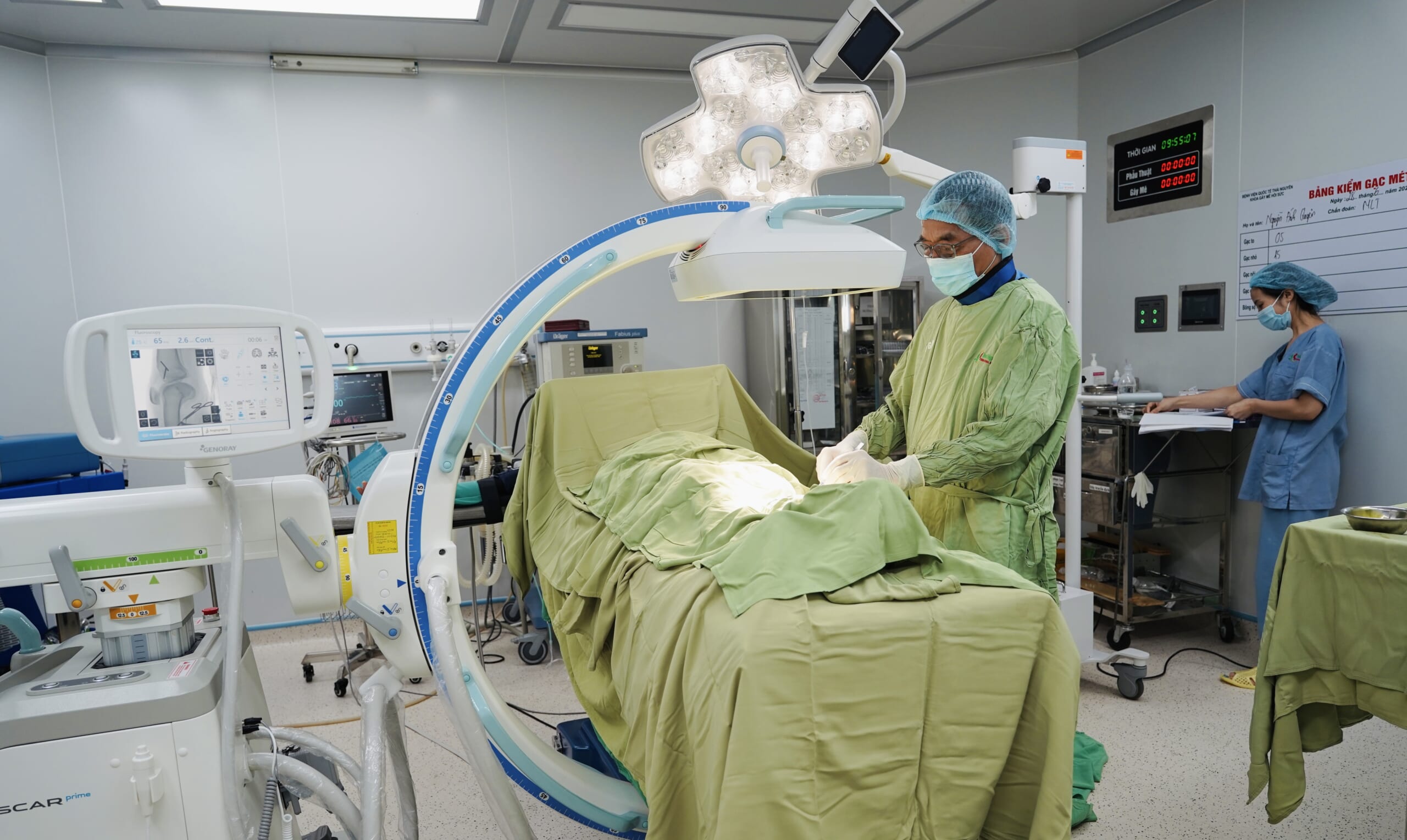 Bác sĩ Bệnh viện Quốc tế Thái Nguyên đang sử dụng máy C-Arm để hỗ trợ phẫu thuật cho người bệnh