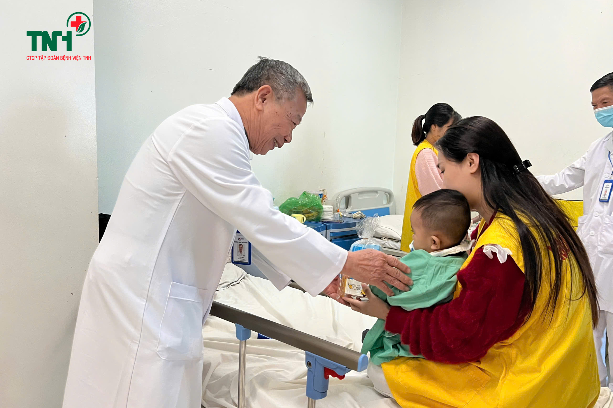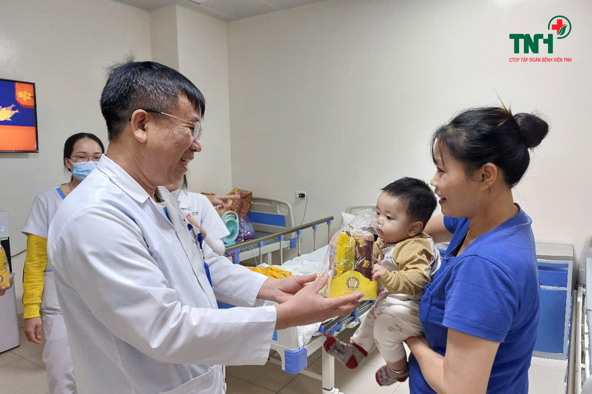 BSCKI – ThS. Trương Đồng Tâm – Giám đốc Bệnh viện Quốc tế Thái Nguyên tặng quà cho bệnh nhi nội trú Thầy thuốc Ưu tú Vũ Đình Lục – Trưởng phòng Điều dưỡng – Bệnh viện Quốc tế Thái Nguyên tặng quà các bệnh nhi nội trú Bác sĩ CKI Ngô Thái Sơn – Trưởng khoa Nhi Bệnh viện Quốc tế Thái Nguyên tặng quà bệnh nhi nội trú