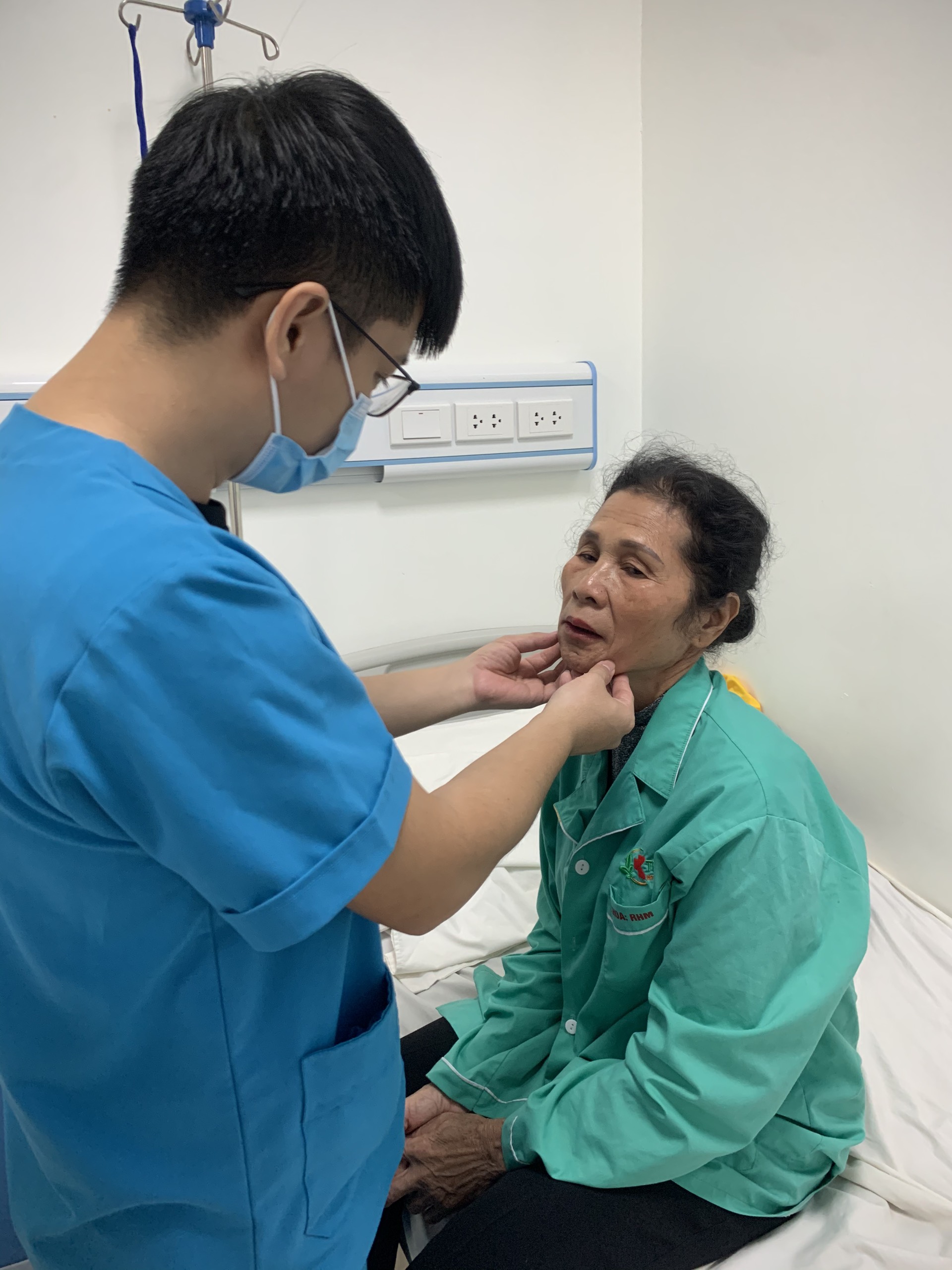 Bác sĩ kiểm tra tình trạng của bệnh nhân sau phẫu thuật