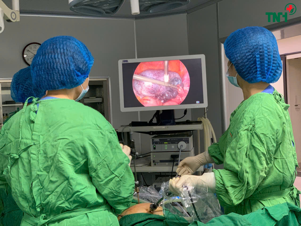 Ca phẫu thuật được thực hiện bởi ekip bác sĩ gồm: BS CKII Hoàng Thị Kim Ngân – Trưởng khoa Phụ sản (phẫu thuật chính), BSCKI Nguyễn Thị Lập; ekip gây mê gồm bác sĩ Lý Thị Thùy Linh và kỹ thuật viên Lê Thị Vân Anh.