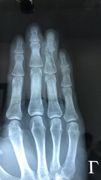 Hình ảnh chụp Xquang của bệnh nhân Chu Minh.P thấy rõ xương ngón tay số 4 đứt gẫy