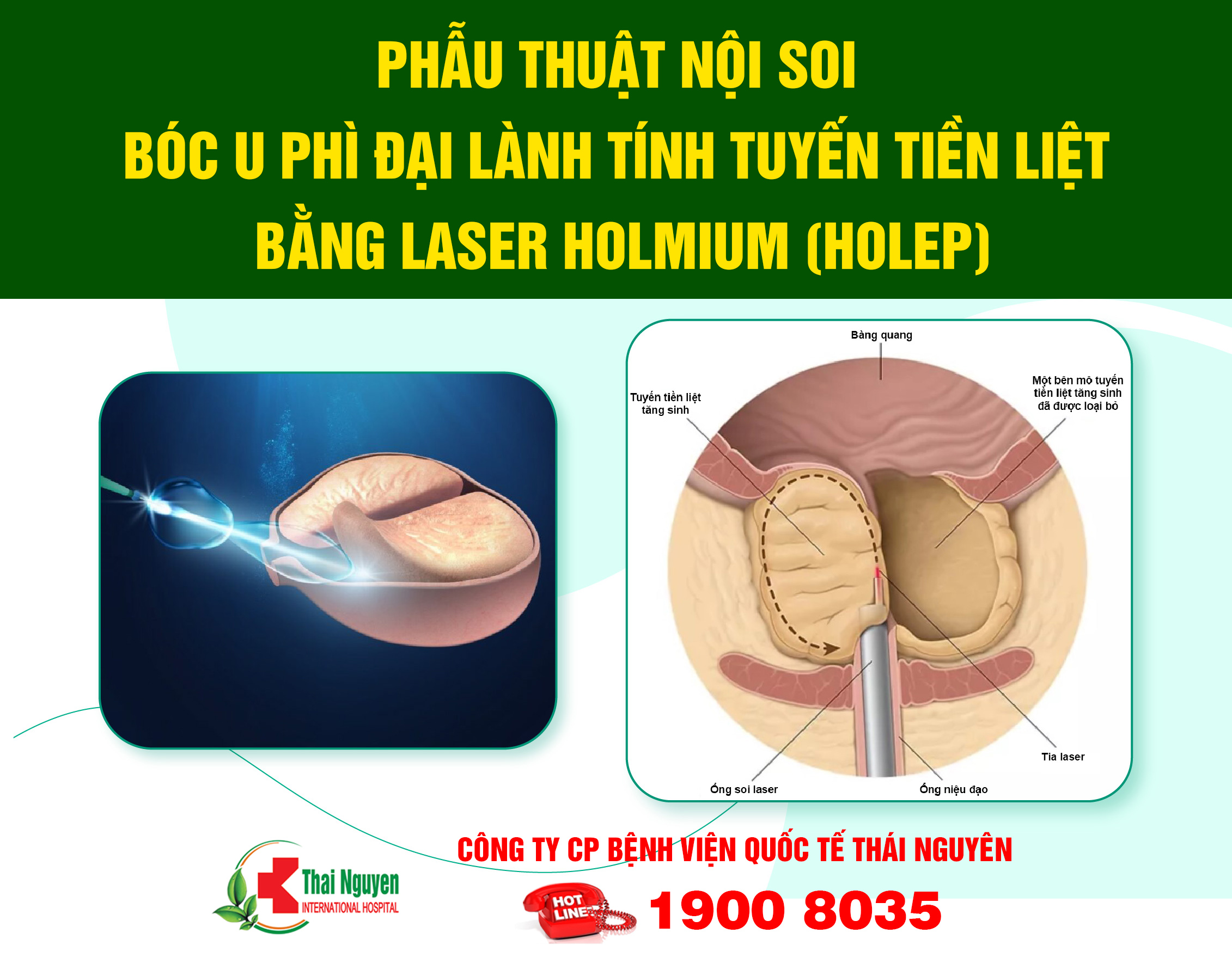 Phẫu thuật nội soi bóc u phì đại lành tính tuyến tiền liệt bằng Laser holmium (Holep) là kỹ thuật mới được TNH triển khai, đem lại hiệu quả tốt nhất, giúp rút ngắn thời gian điều trị.