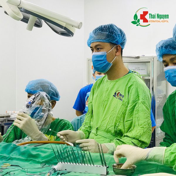 GS.TS Nguyễn Tấn Phong đang thực hiện phẫu thuật cho bệnh nhân tại Bệnh viện Quốc tế Thái Nguyên