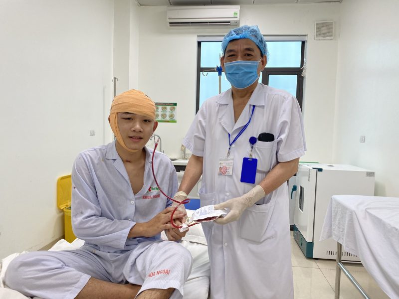 Bệnh nhân Phạm Quang.H sau khi các bác sỹ thực hiện phẫu thuật vá sọ tự thân