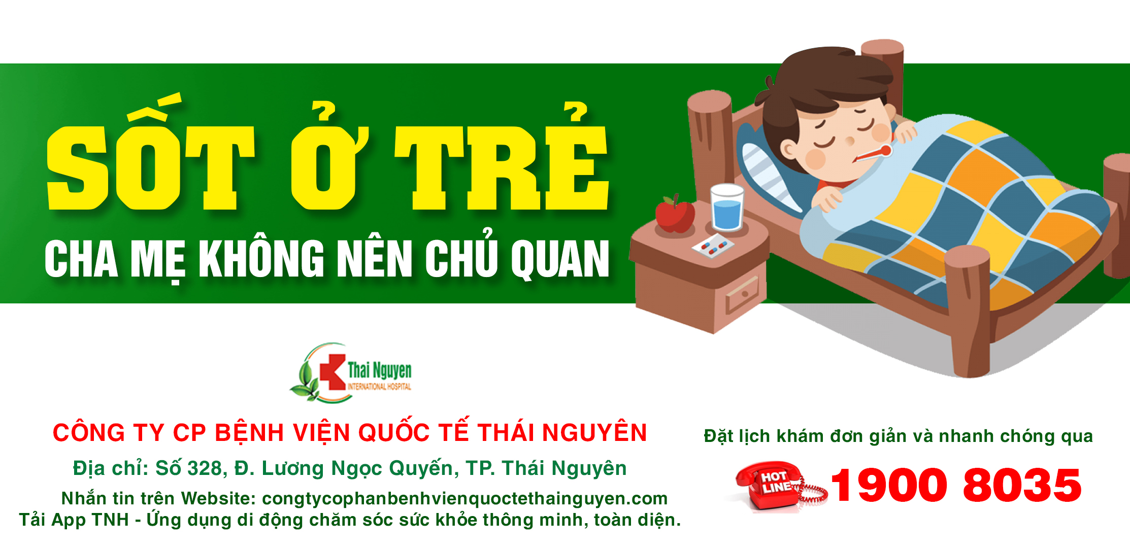 *Trong trường hợp trẻ có biểu hiện sốt, ho, mệt và không đáp ứng với thuốc hạ sốt, cha mẹ cần nhanh chóng đưa trẻ đến các cơ sở y tế để được thăm khám và xử trí kịp thời, phòng tránh nguy cơ biến chứng. Bệnh viện Quốc tế Thái Nguyên và Bệnh viện Đa khoa Yên Bình Thái Nguyên là các đơn vị y tế uy tín trong việc thăm khám, chẩn đoán, đảm bảo việc thăm khám và điều trị các bệnh lý cho trẻ kịp thời, hiệu quả.