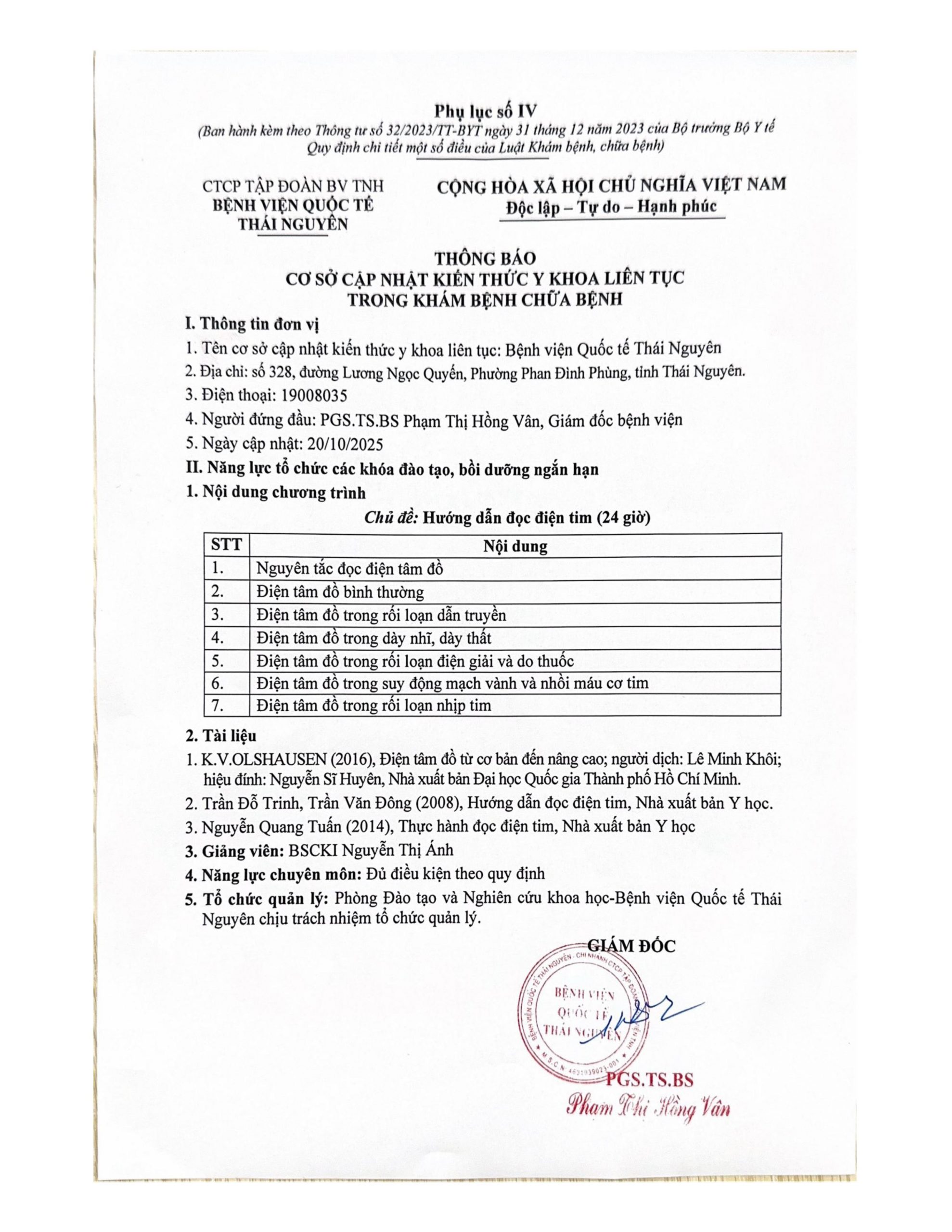 Bệnh viện Quốc tế Thái Nguyên trực thuộc CTCP Tập đoàn Bệnh viện TNH thông báo Cơ sở cập nhập kiến thức y khoa liên tục trong khám bệnh chữa bệnh.