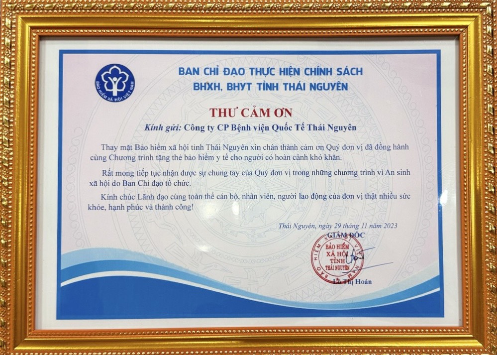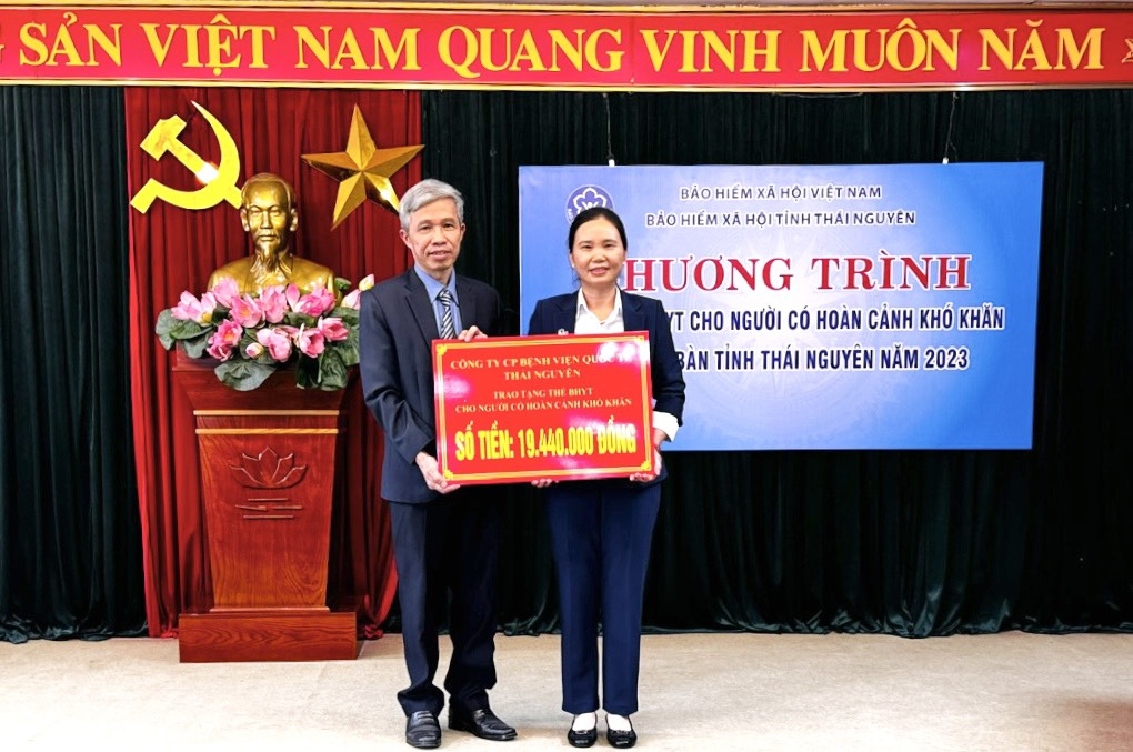 Ngày 29/11/2023, Công ty Cổ phần Bệnh viện Quốc tế Thái Nguyên (TNH) đã tiến hành tặng thẻ Bảo hiểm y tế (BHYT) cho người có hoàn cảnh khó khăn trên địa bàn tỉnh Thái Nguyên năm 2023.