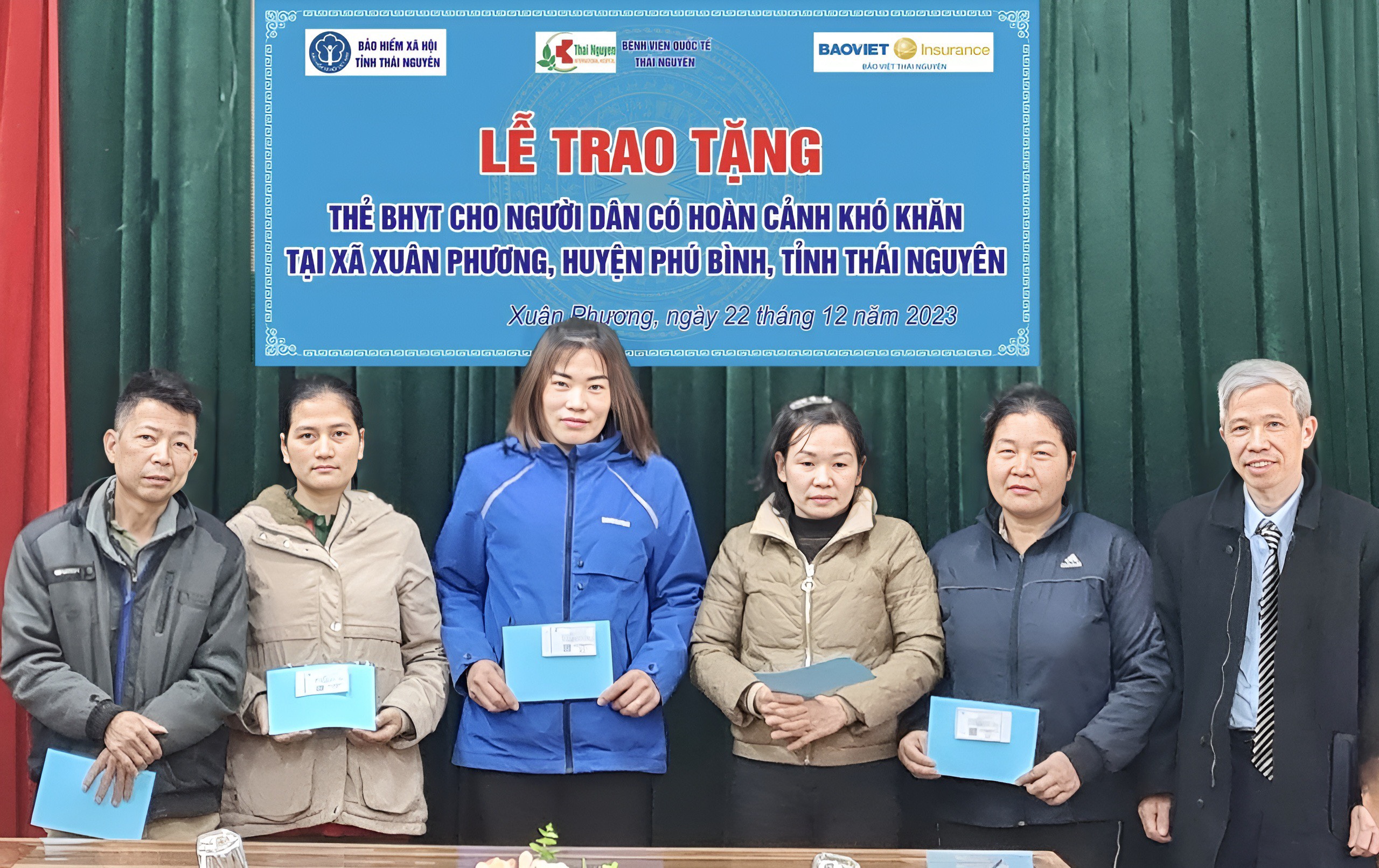 Ngày 22/12/2023, Công ty Cổ phần Bệnh viện Quốc tế Thái Nguyên (TNH) đã tiến hành tặng thẻ Bảo hiểm y tế (BHYT) cho người dân có hoàn cảnh khó khăn tại xã Xuân Phương, huyện Phú Bình, tỉnh Thái Nguyên.