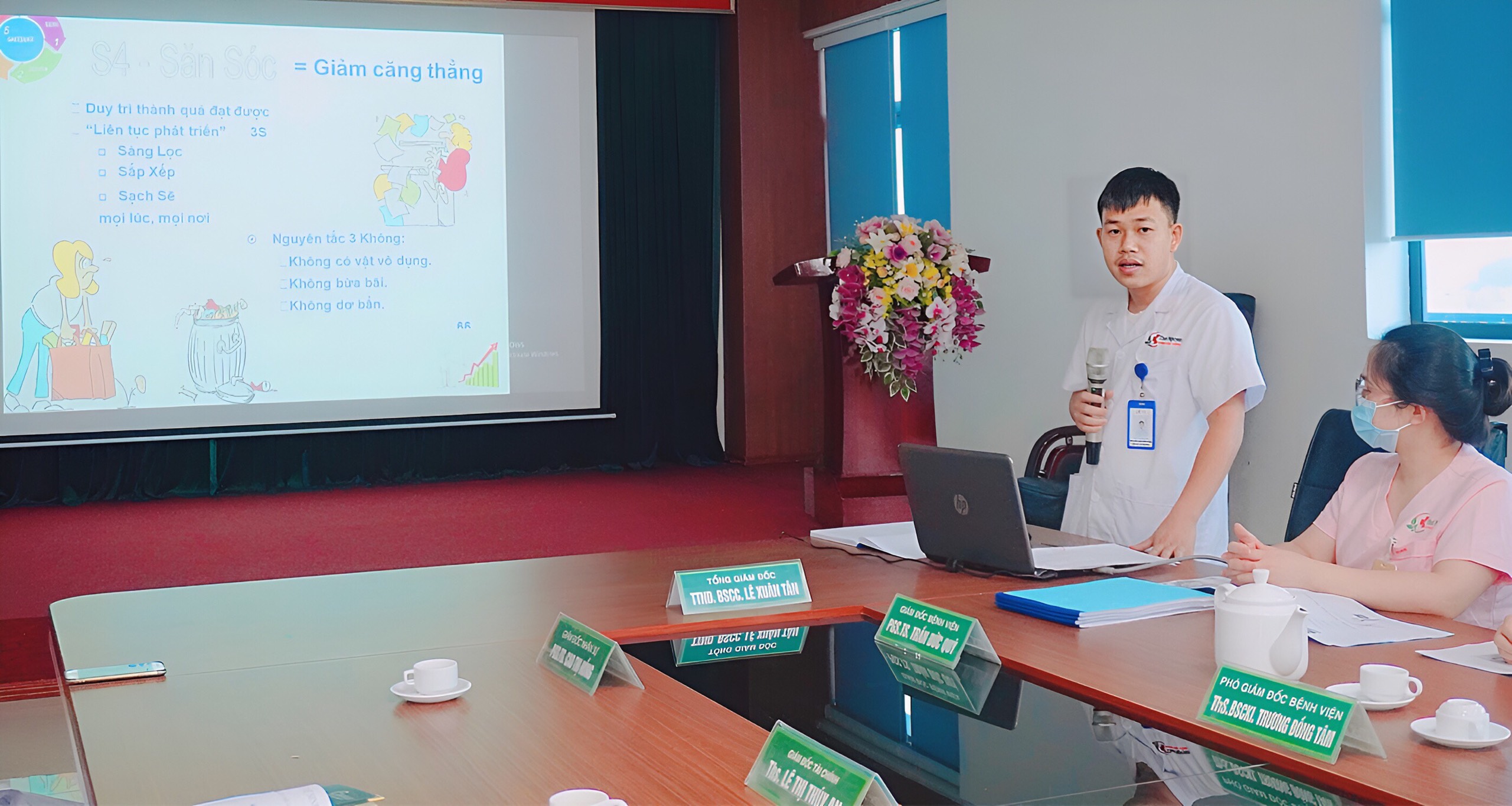 Tại chương trình, BS. Đinh Thanh Tâm, Trưởng khoa Kiểm soát nhiễm khuẩn, Bệnh viện Quốc tế Thái Nguyên đã giới thiệu chung về 5S; Hướng dẫn các bước áp dụng 5S và Tiêu chí đánh giá thực hiện tốt 5S trong bệnh viện. Việc xây dựng và triển khai thực hiện chương trình “5S – SÀNG LỌC, SẮP XẾP, SẠCH SẼ, SĂN SÓC, SẴN SÀNG” giúp nâng cao chất lượng chuyên môn, hạn chế, ngăn chặn những sai sót, sự cố trong quá trình chăm sóc điều trị, đảm bảo hiệu quả cho dịch vụ chăm sóc y tế tại bệnh viện.