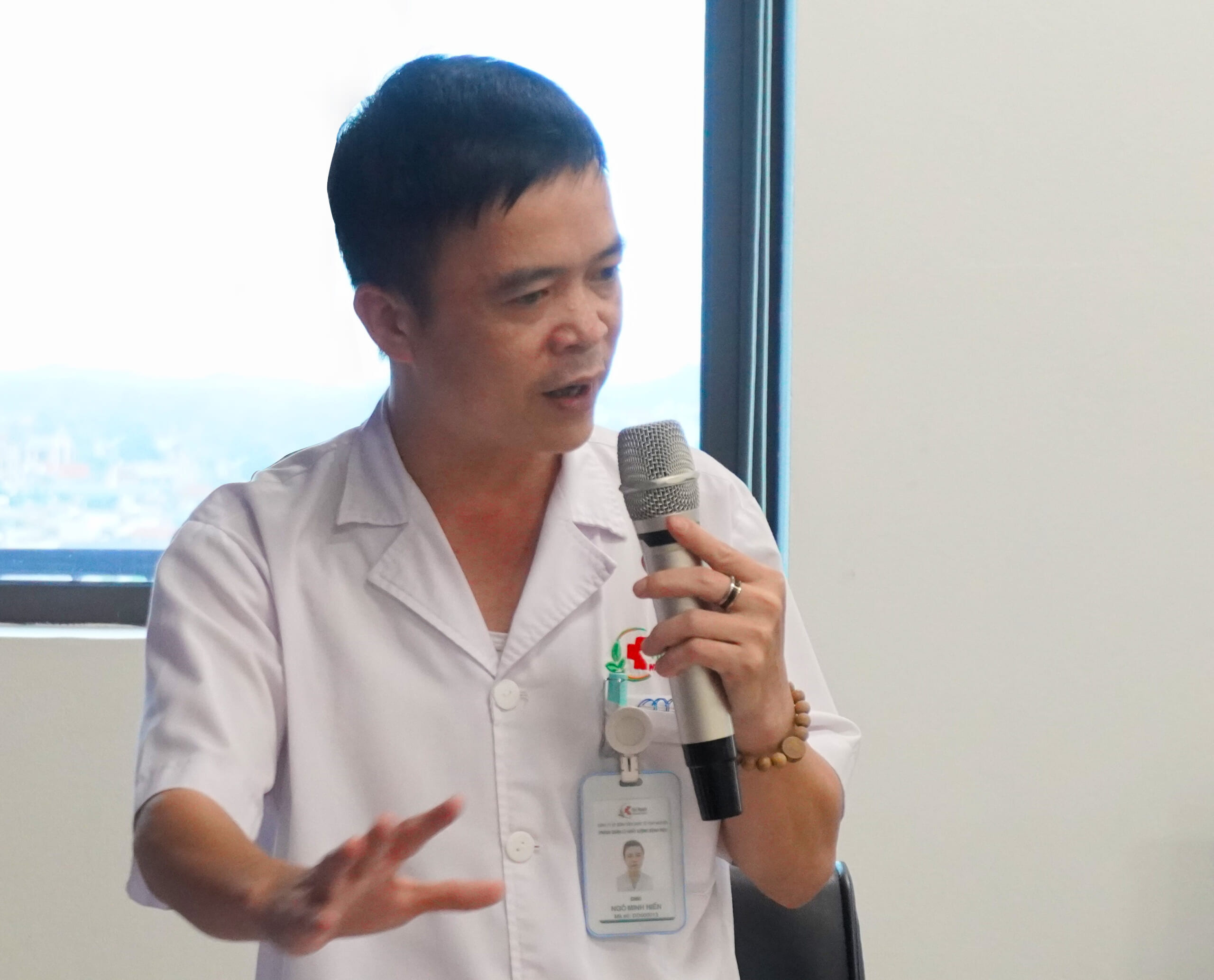 Ông Ngô Minh Hiến, Phòng Điều dưỡng, Bệnh viện Quốc tế Thái Nguyên phát biểu tại chương trình
