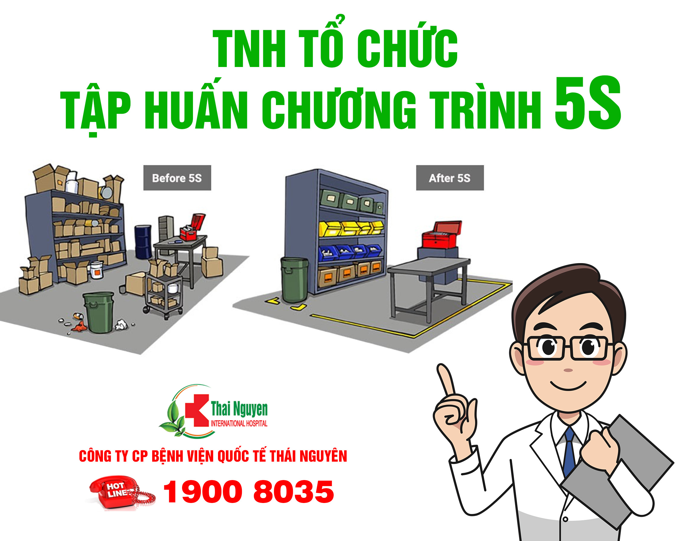 Trong các ngày 23 và 25/11/2022, Bệnh viện Quốc tế Thái Nguyên thuộc Công ty Cổ phần Bệnh viện quốc tế Thái Nguyên (TNH) đã tổ chức tập huấn chương trình 5S cho cán bộ, nhân viên trong toàn Bệnh viện.
