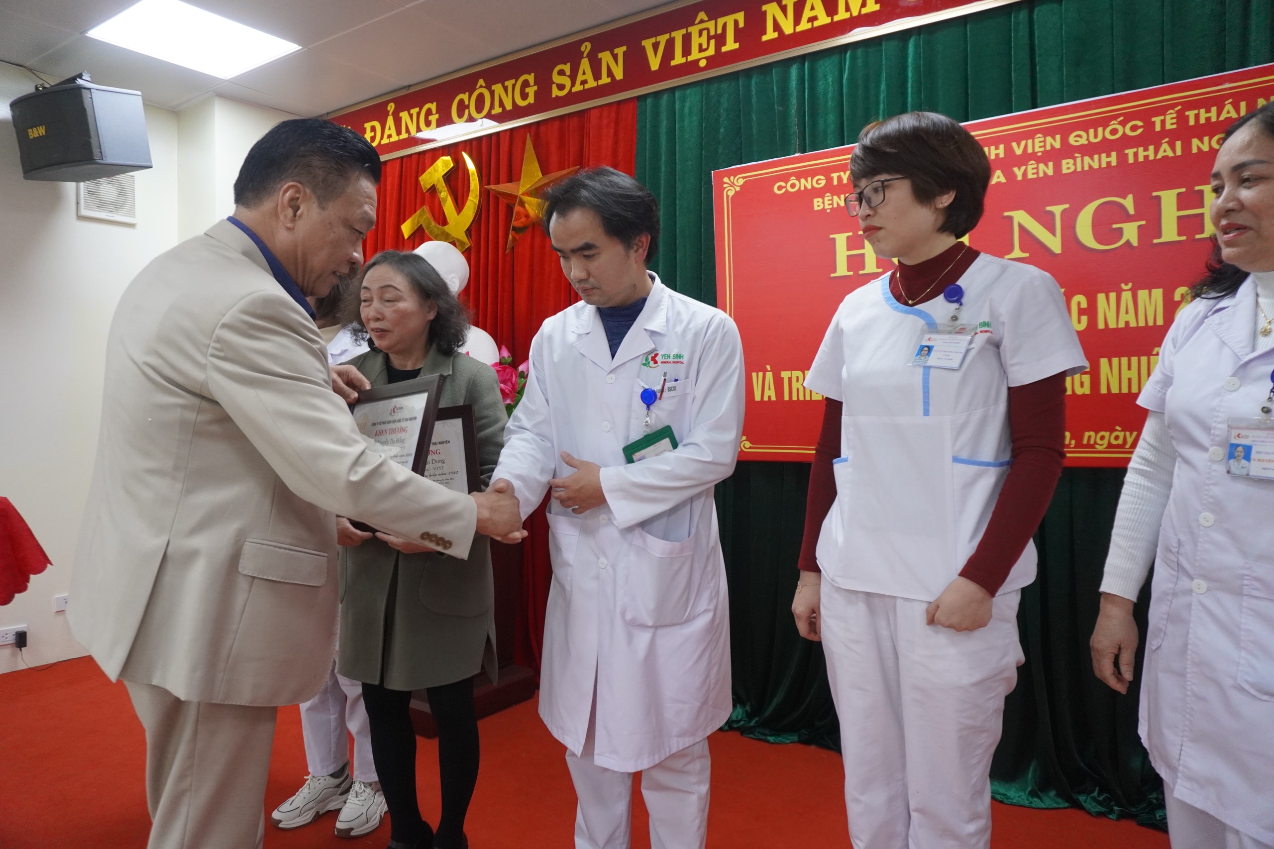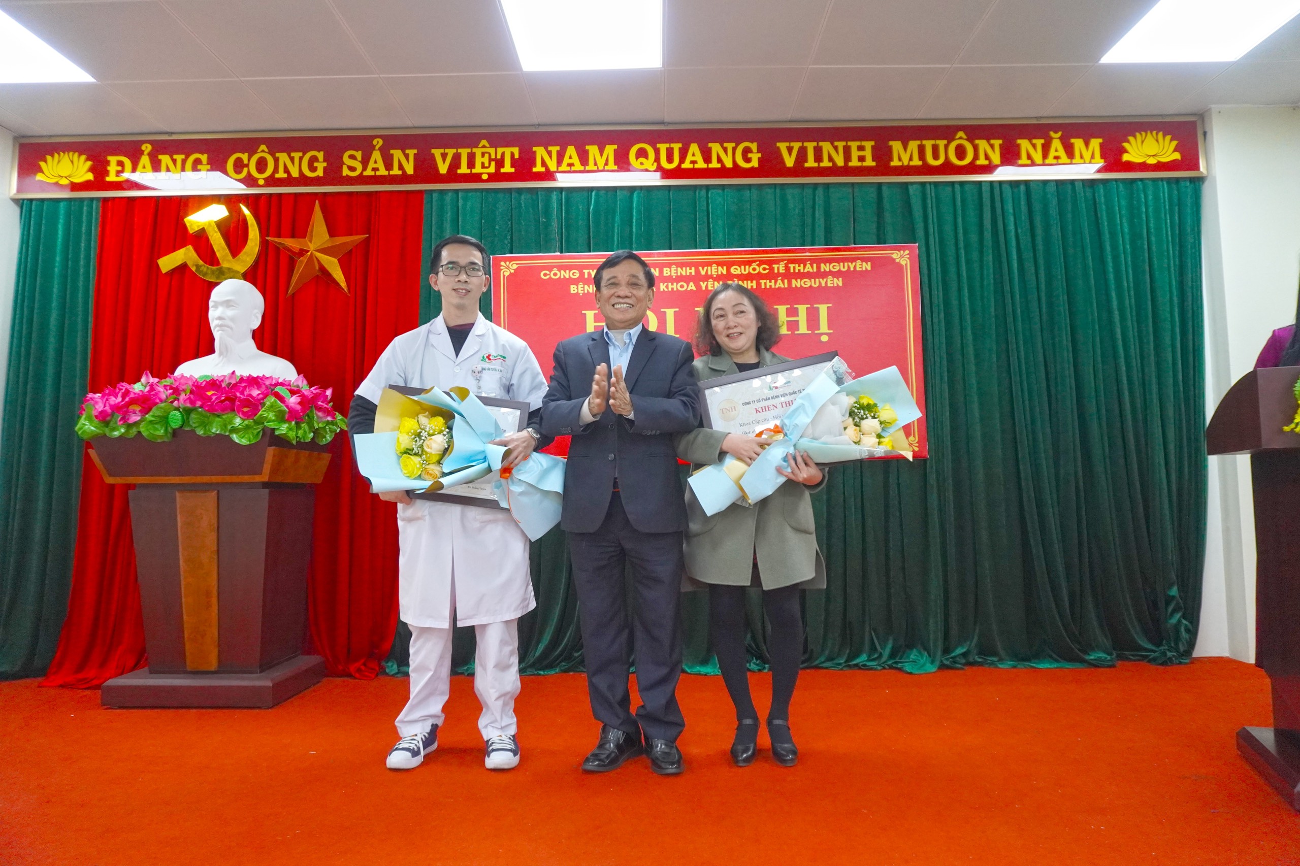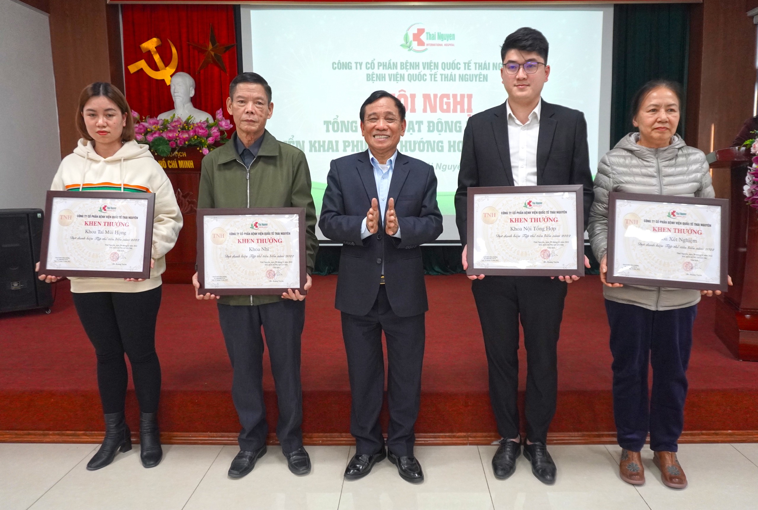 Ban lãnh đạo TNH khen thưởng cho các cá nhân tiêu biểu năm 2022 của Bệnh viện Quốc tế Thái Nguyên.