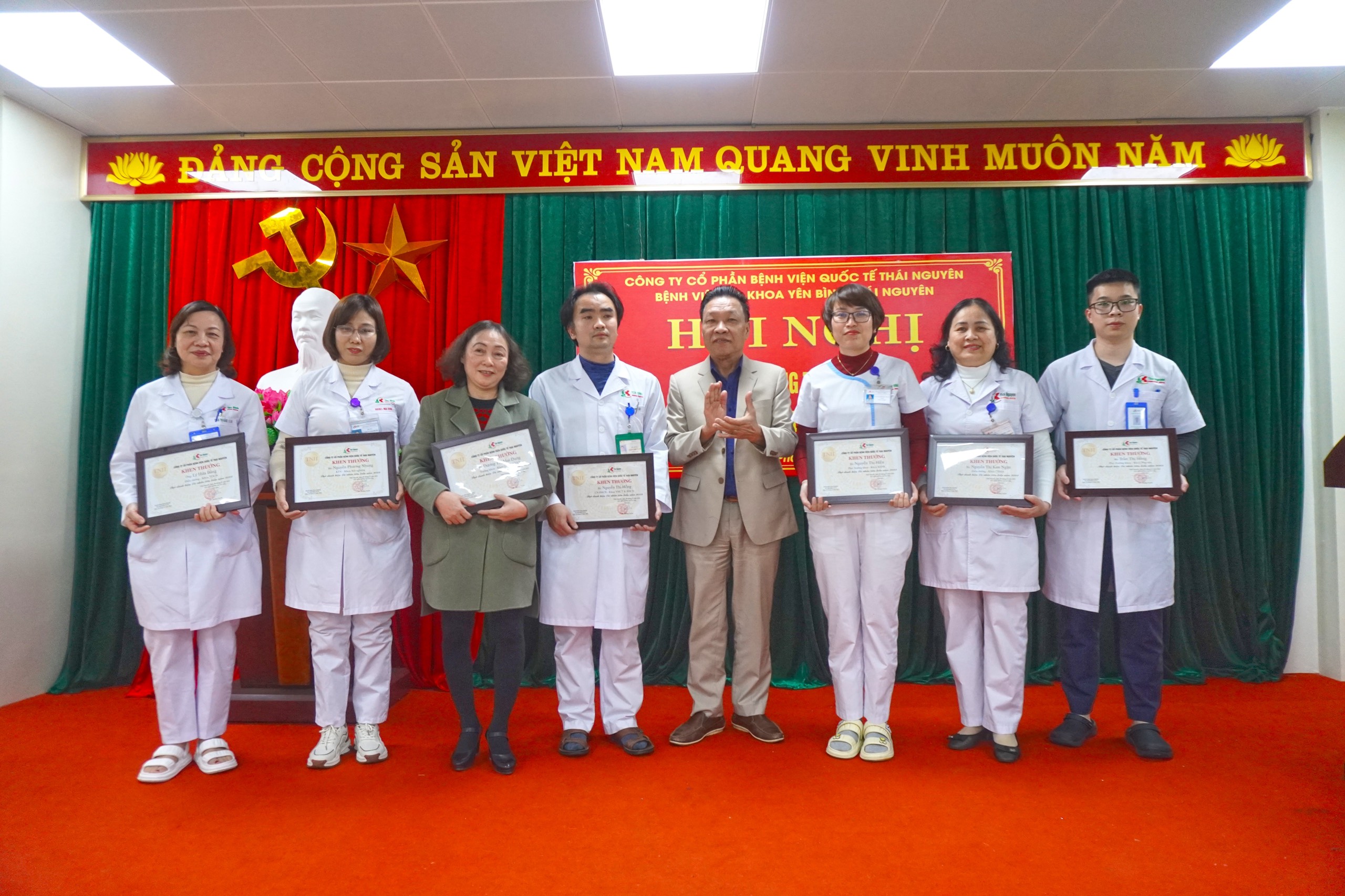 Ban lãnh đạo TNH khen thưởng cho các cá nhân tiêu biểu năm 2022 của Bệnh viện Đa khoa Yên Bình Thái Nguyên.